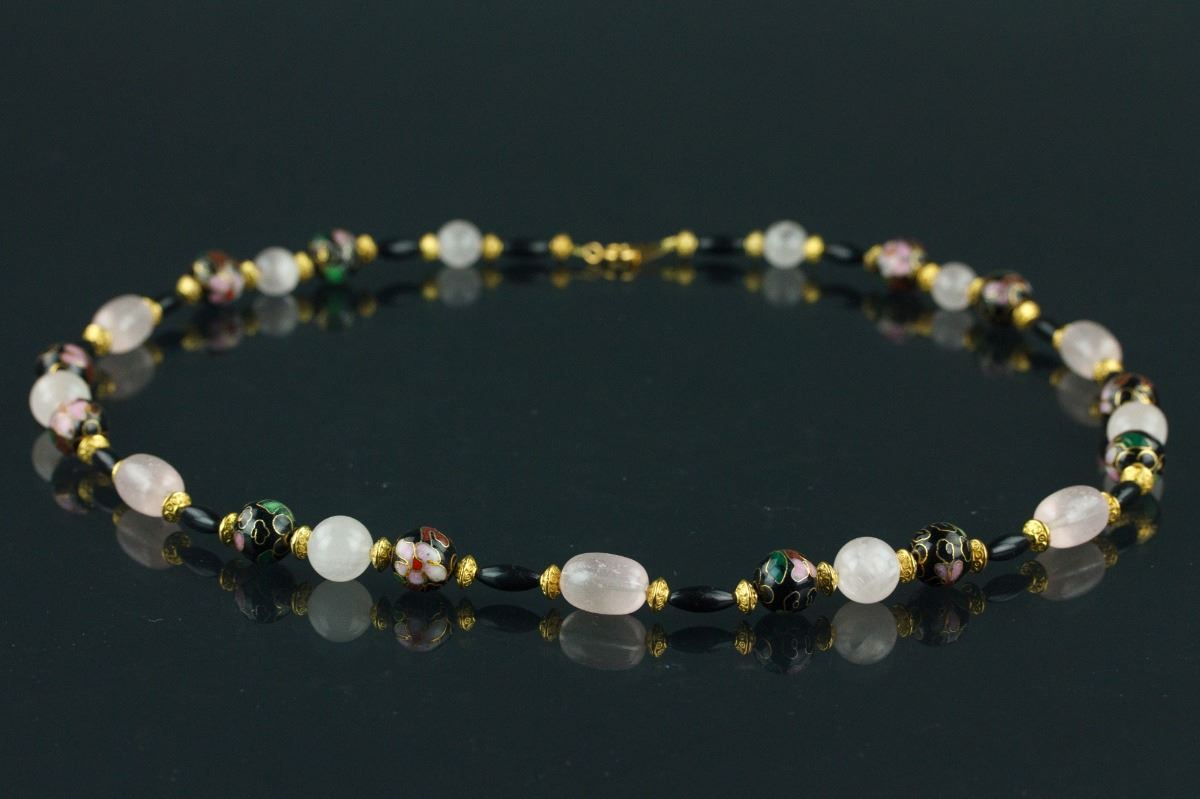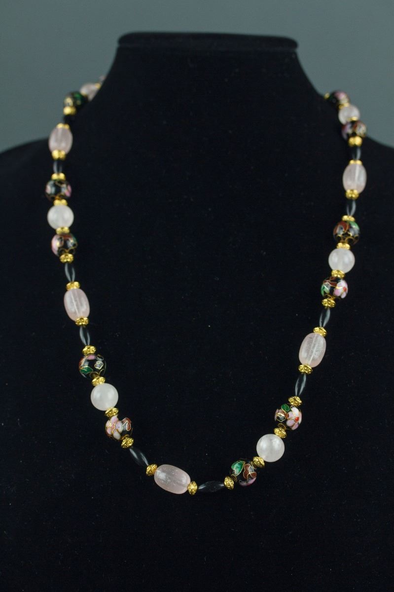 Three pieces of Chinese decorative necklaces; comprised of various gemstones; D: 24/14/11 cm, 170 grams total