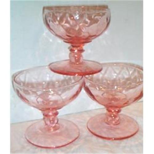 <tr><td>Title:Three Pink Optic Depresion Glass Sherbets</td></tr>