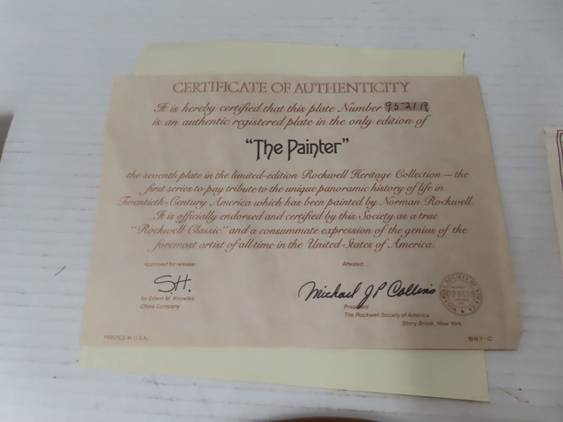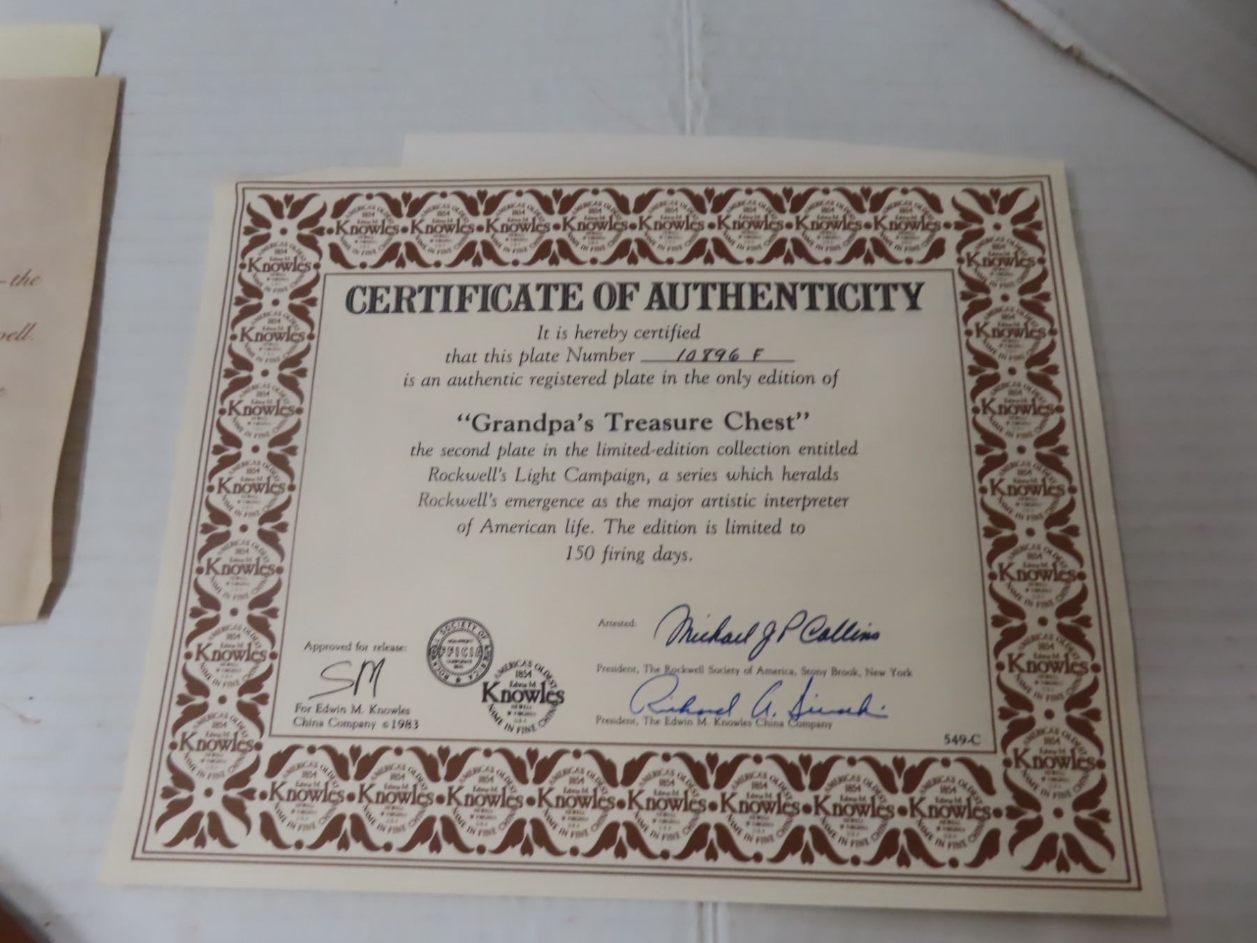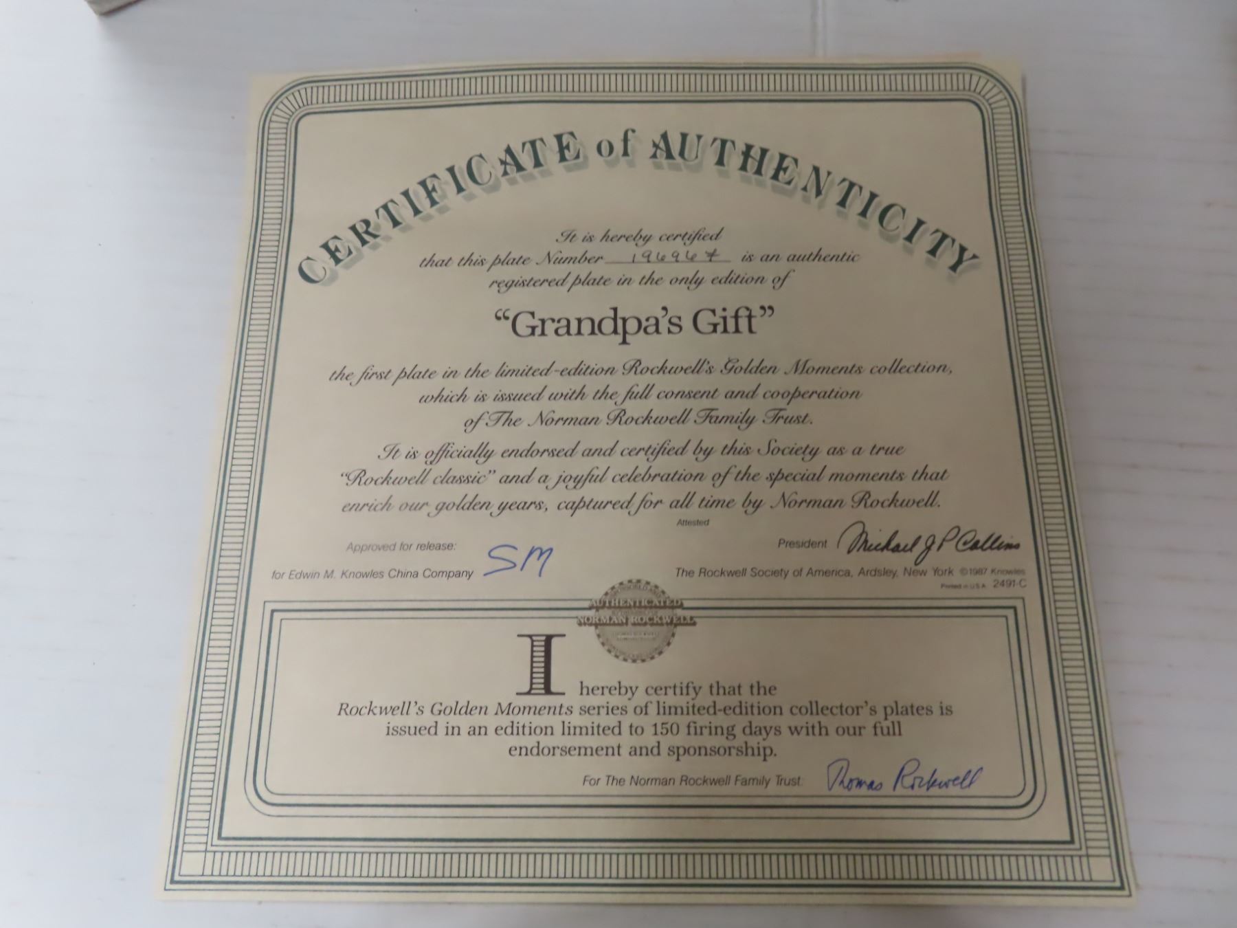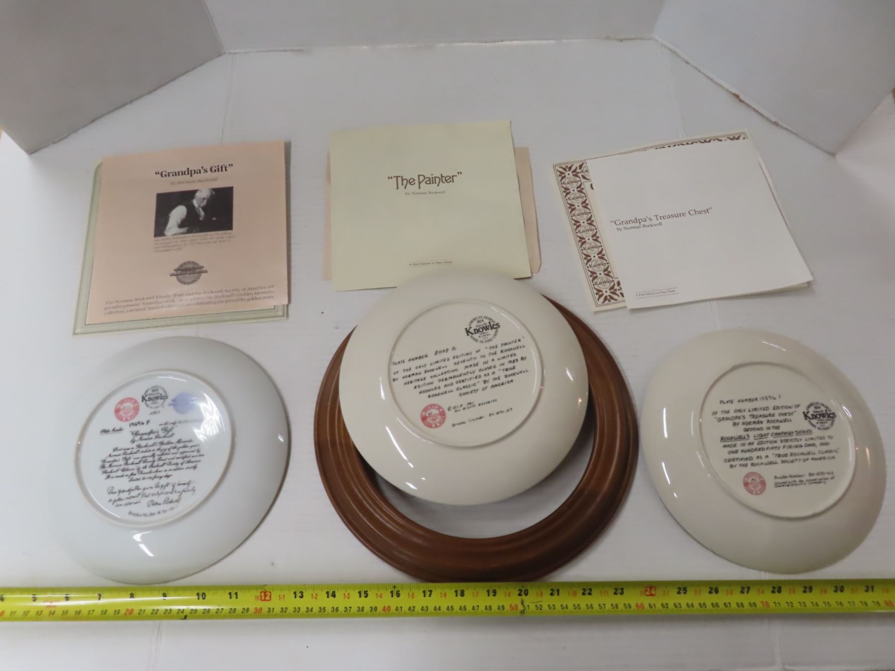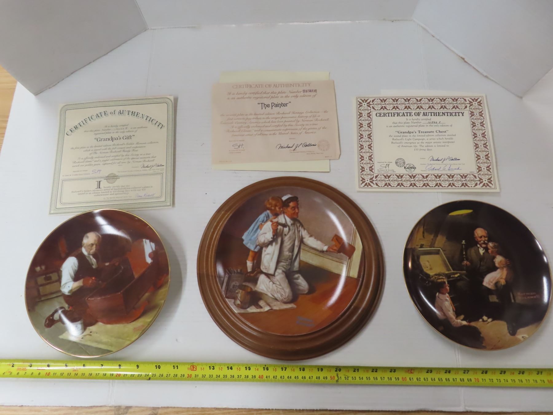 Three Plates (Grandpa's Gift, The Painter and Grandpa's Treasure Chest) by Norman Rockwell with Certificate of Authenticity and One Plate Frame..