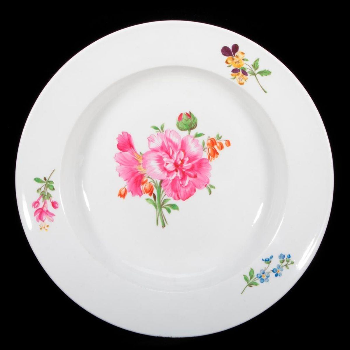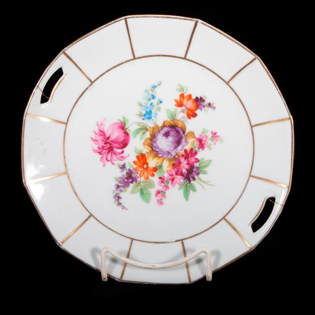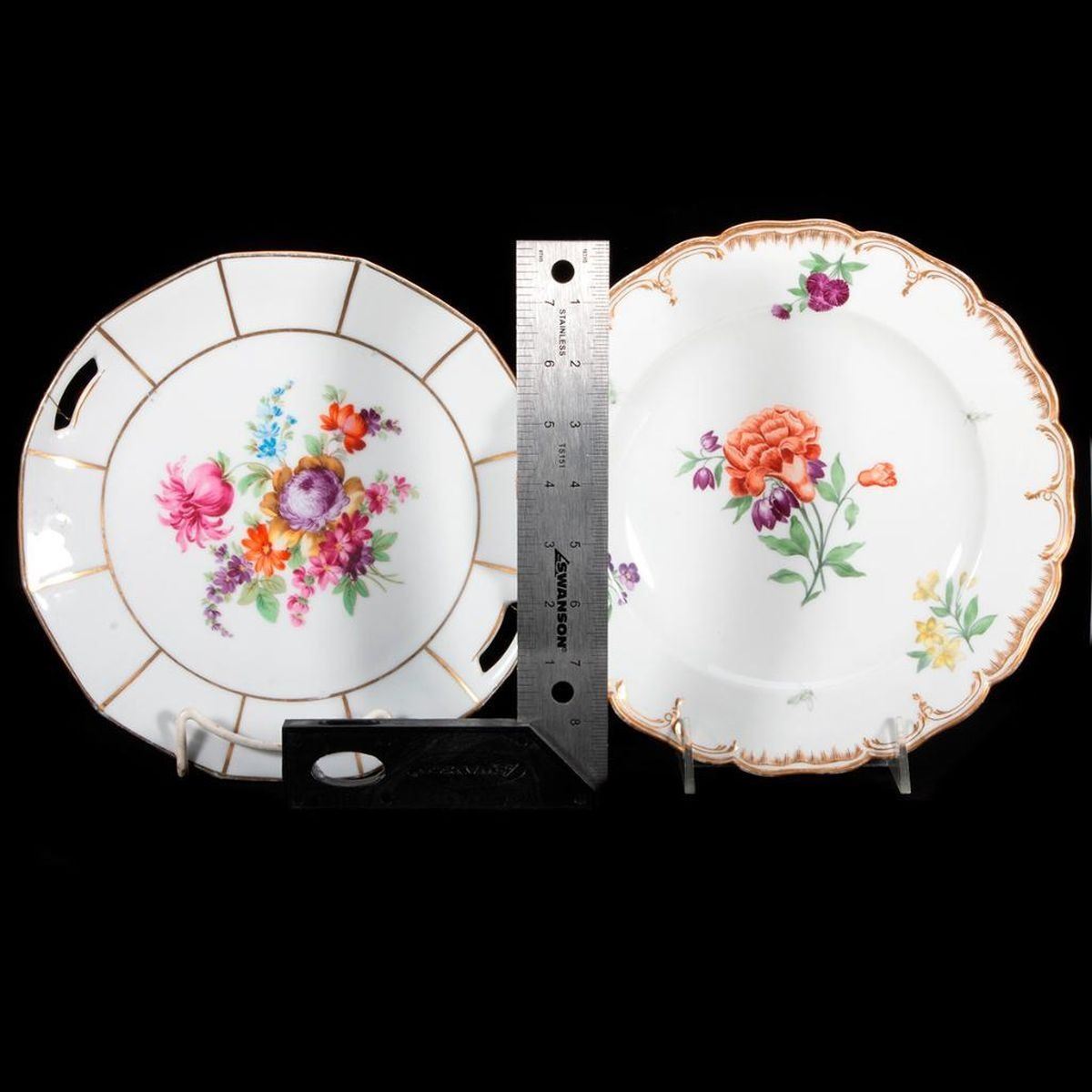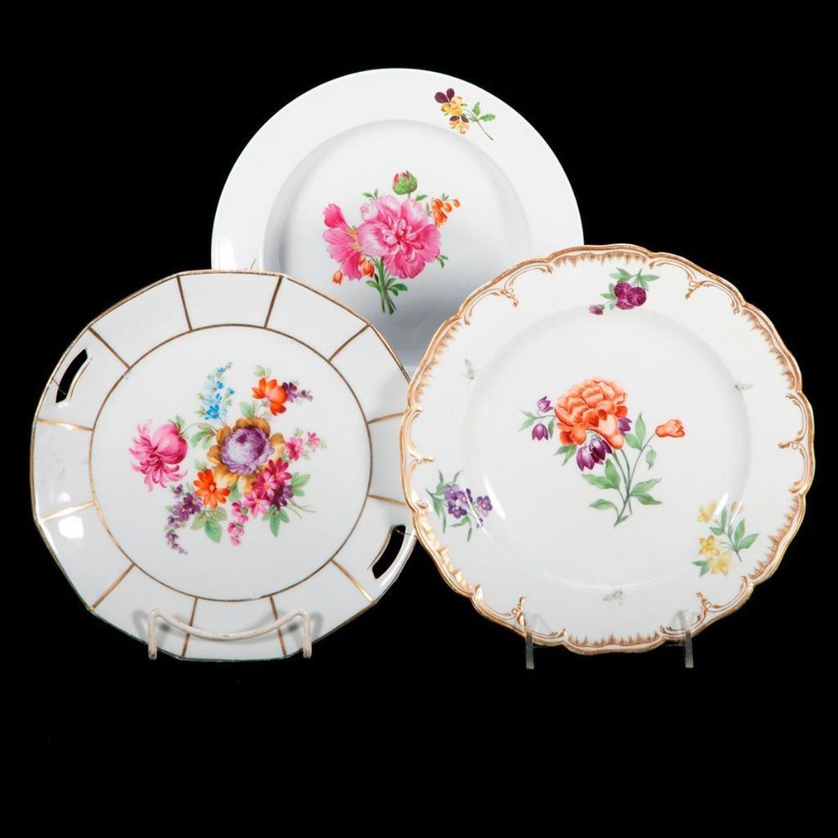 Three plates with hand painted florals each marked on the underside as scene in the photo's. Dia- 9.5" largest Condition: Very Good, no damage