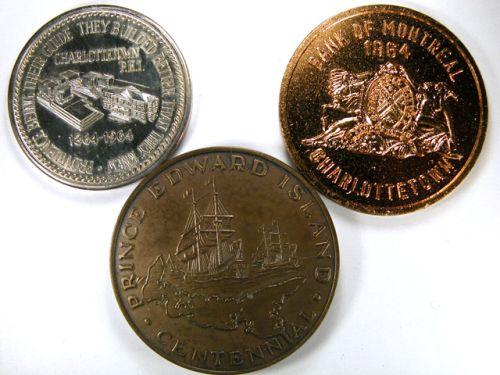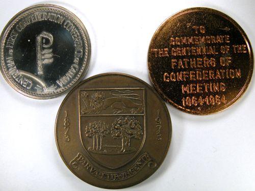 1864-1964 Centennial of Confederation Conference, Silver 32.3mm. Plus 1964 Bank of Montreal Charlottetown Centennial of Fathers of Confederation Meeting, Brass 34mm and 1873-1973 Prince Edward Island Centennial, Bronze 38.5mm