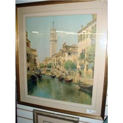 Three Pieces - Prints: Framed Print of Venice Canal Scene by Rico; Framed Print, Floral and Butterfly Scene by John Chumley, Signed Betty Chumley, 148/1000, Framed Print, Pasture and Budding Tree Scene signed Murrell Bolliger, 195/400 ( All Prints in Overall Good Condition Consistent With Age ).