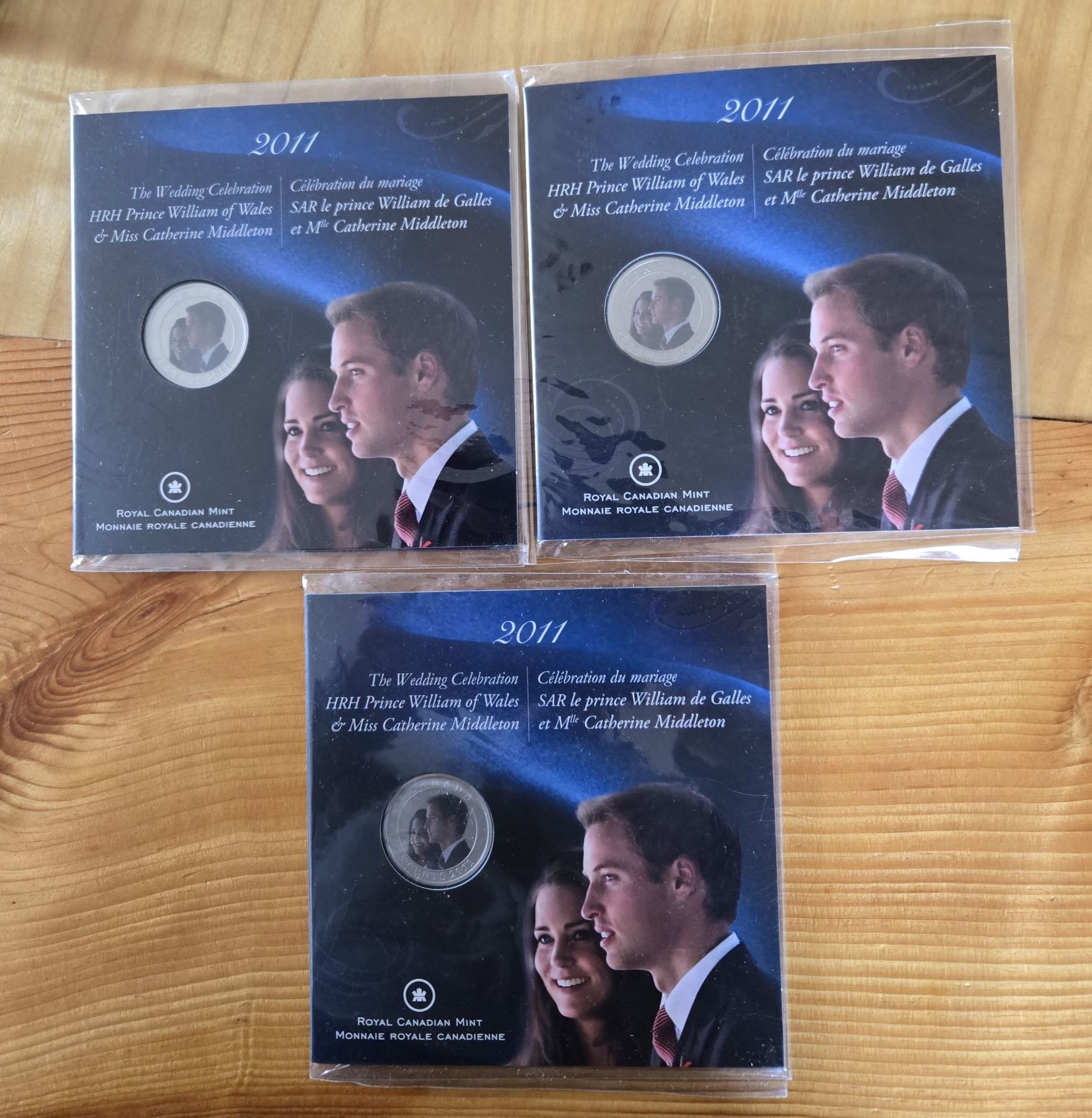 Three RCM 2011 William and Kate Commemorative Wedding Coins