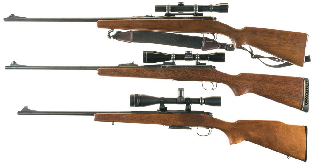 Three Remington Bolt Action Sporting Rifles with Scopes -A) Remington Model 721 Rifle