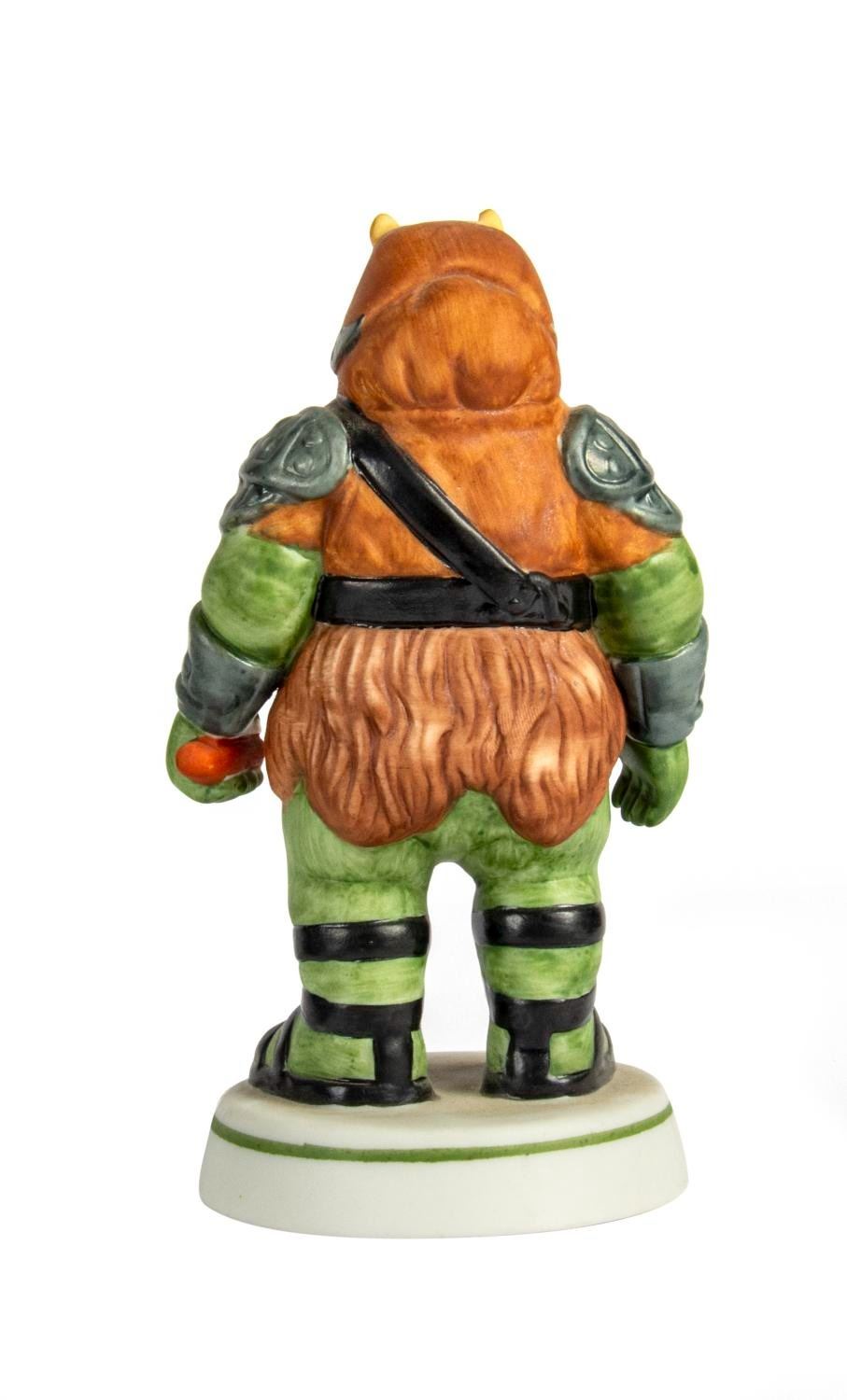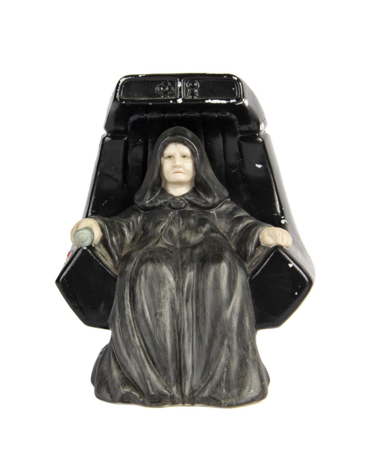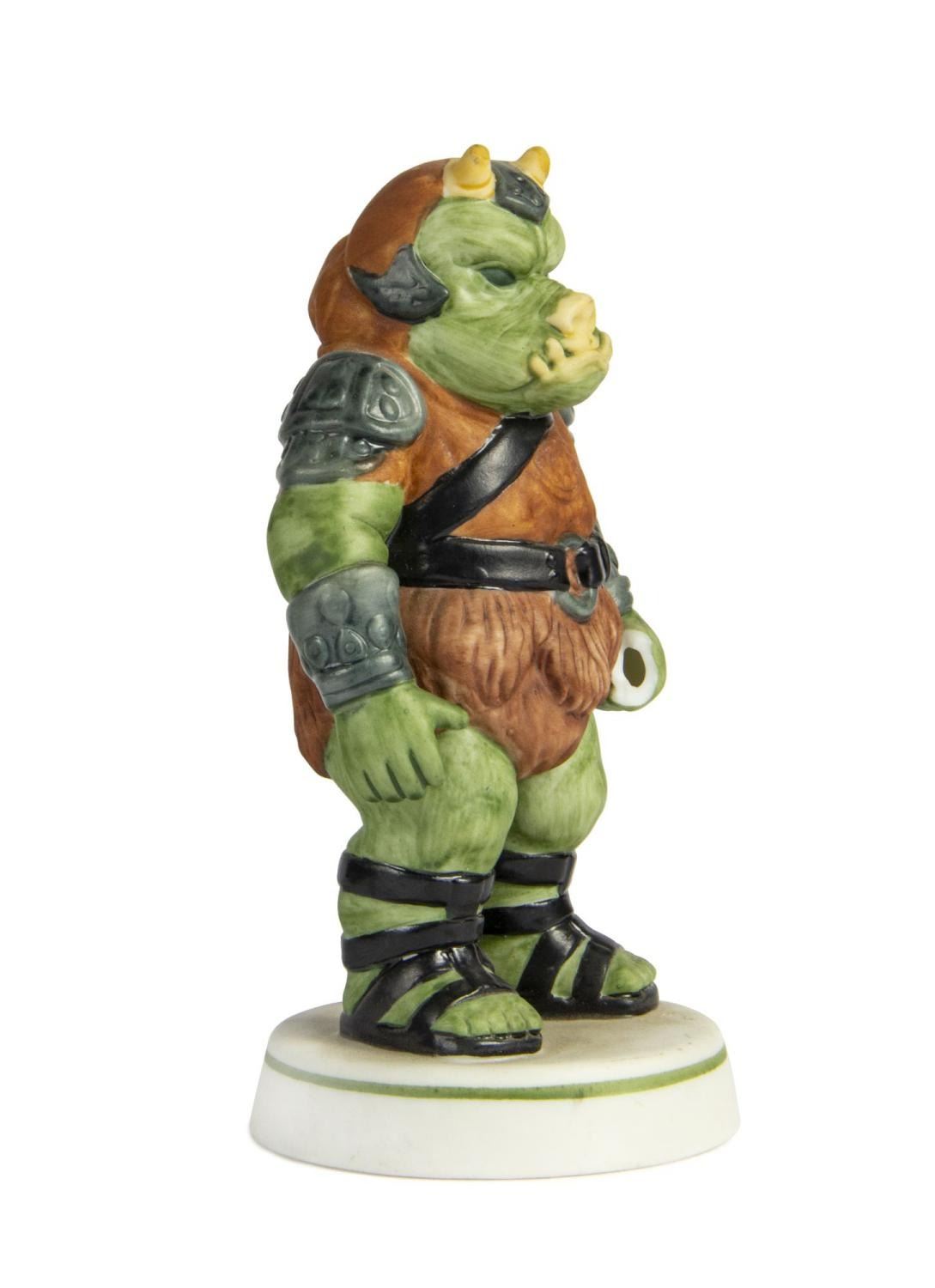 (Sigma, 1983) Three hand-painted ceramic figurines from "Return of the Jedi,” including the Emperor, Klaatu, and a Gamorrean Guard. Ranging in size from 2.5” x 2.5” x 5.25” to 3.5” x 4.25” x 5.25”, the figurines display in fair to very good condition with scuffs, particularly the Emperor with paint loss, and the Guard’s axe and part of the left hand have broken off and are not included.