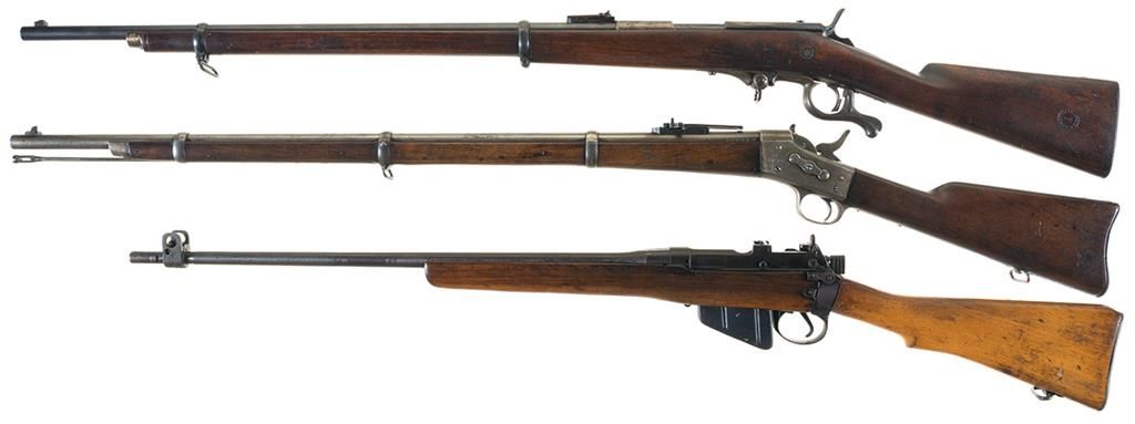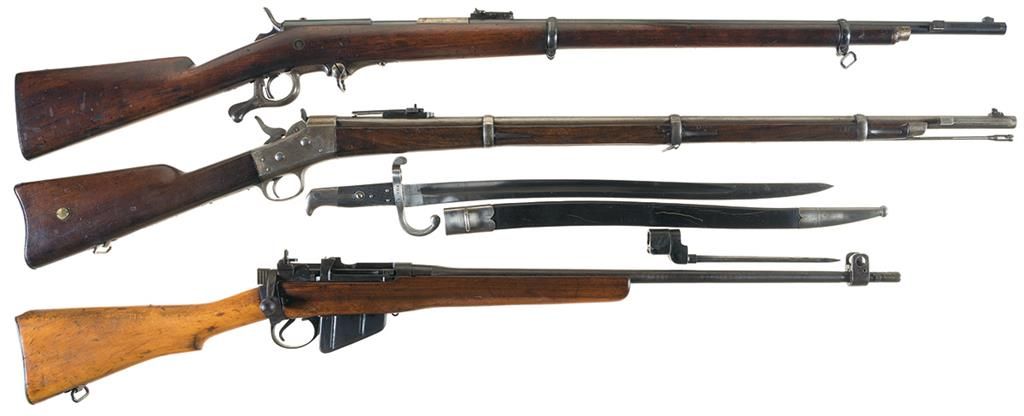 Three Rifles -A) Unidentified Belgian Single Shot Lever Action Rifle
