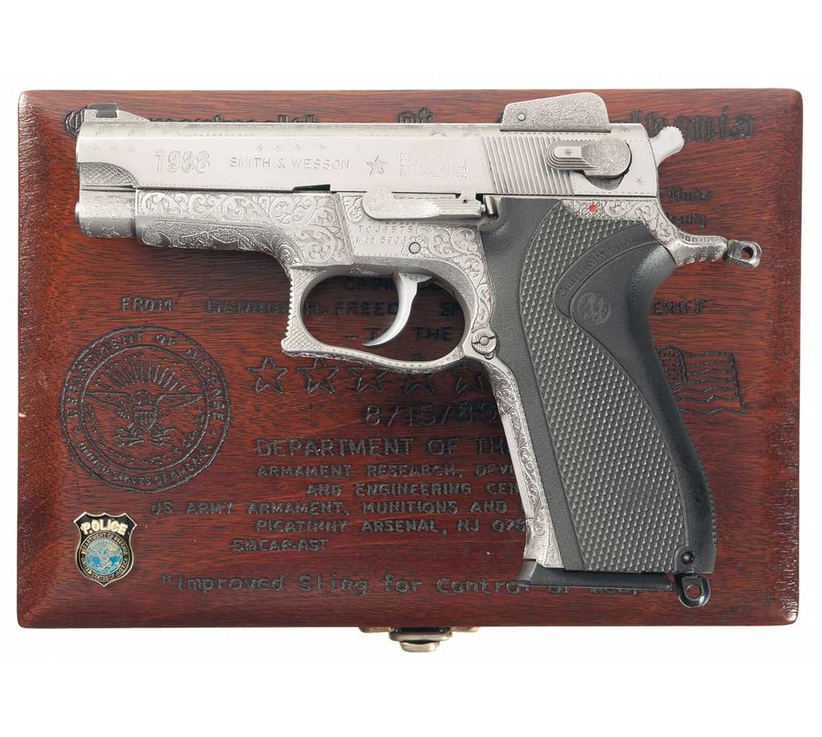 9. GUARANTEE. All property offered for sale is as is, where is. ALL SALES ARE FINAL. THERE WILL BE NO REFUNDS AND NO EXCHANGES. Rock Island Auction does not guarantee or make warranties on any lot sold. Descriptions in the catalog are opinion. They are written as an aid to potential bidders. We acknowledge that there may be errors in what is written. Bottom line is if you bid on it and you are successful you own it. We strongly recommend you to personally view any item you bid on or have an acknowledged expert view the item. Rock Island Auction Company will have no obligation including no refunds or returns will be accepted if the above conditions are not met. Items offered for sale as described in the catalog or any bill of sale, advertisement, addendum sheet, or elsewhere as to authorship, period, culture, source, origin, measurement, quality, rarity, provenance, importance, exhibition, physical condition are qualified statements of opinion and not representations or warranties. No employee of Rock Island Auction Company or any person purporting to act on behalf of Rock Island Auction Company is authorized to make on our behalf or that of the consignor, any representation or warranty, oral or written, with respect to any lot or item for sale.