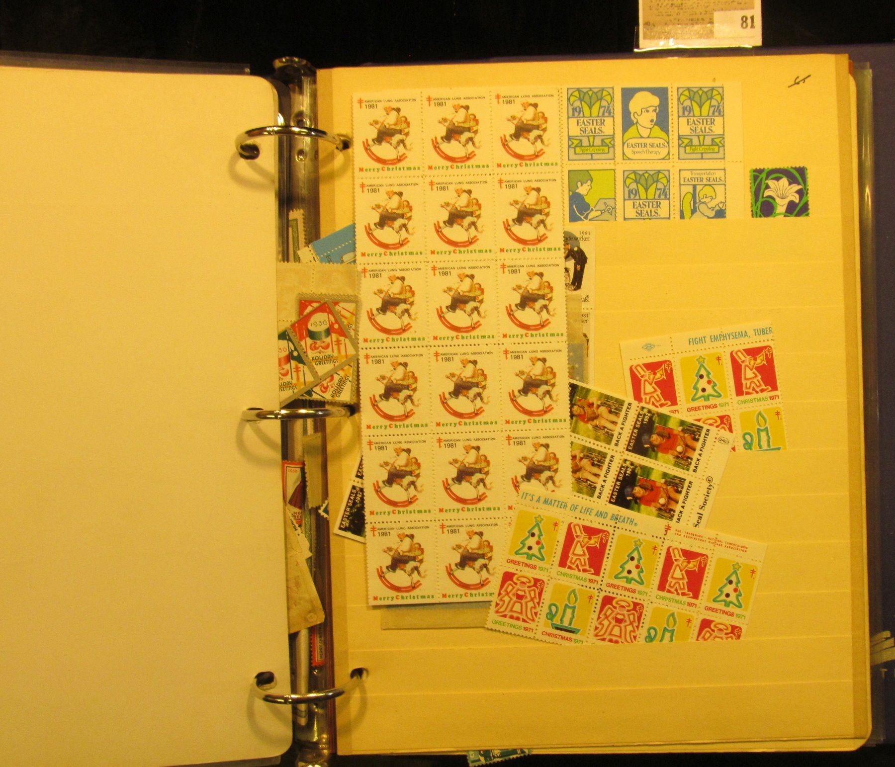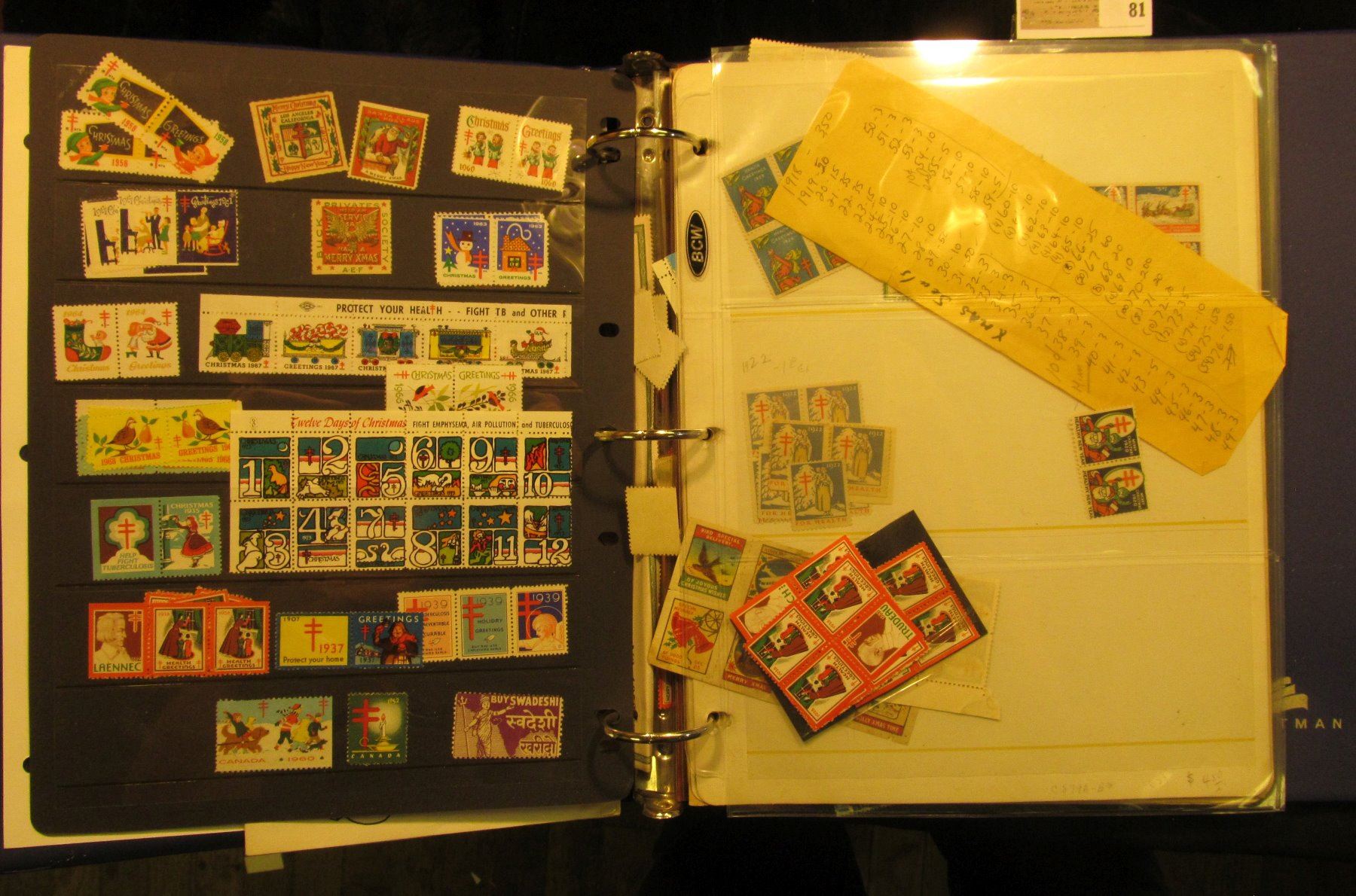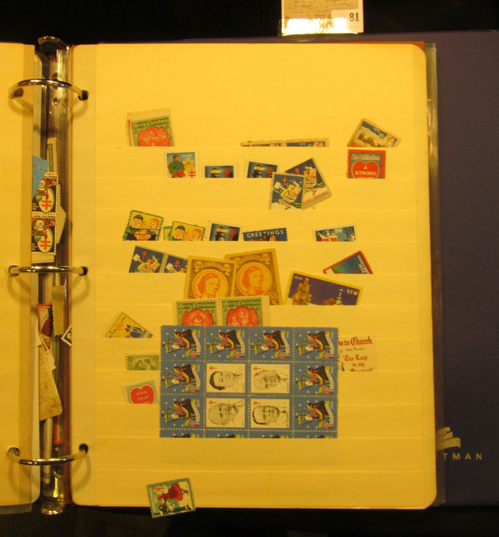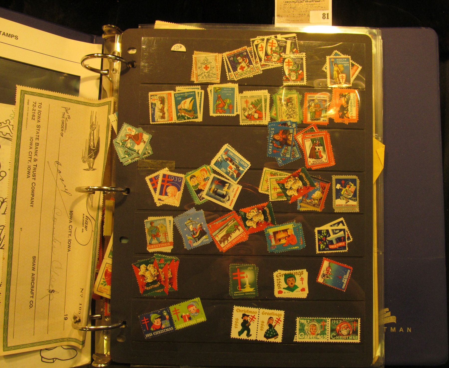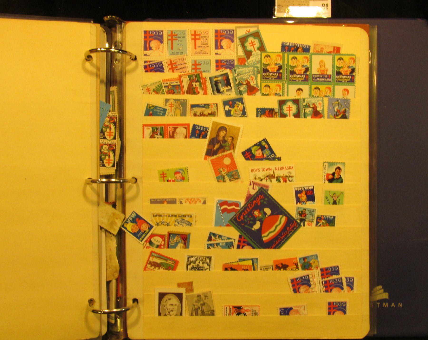 Three-Ring Spiral Notebook full of early 1900 era Christmas Seals.