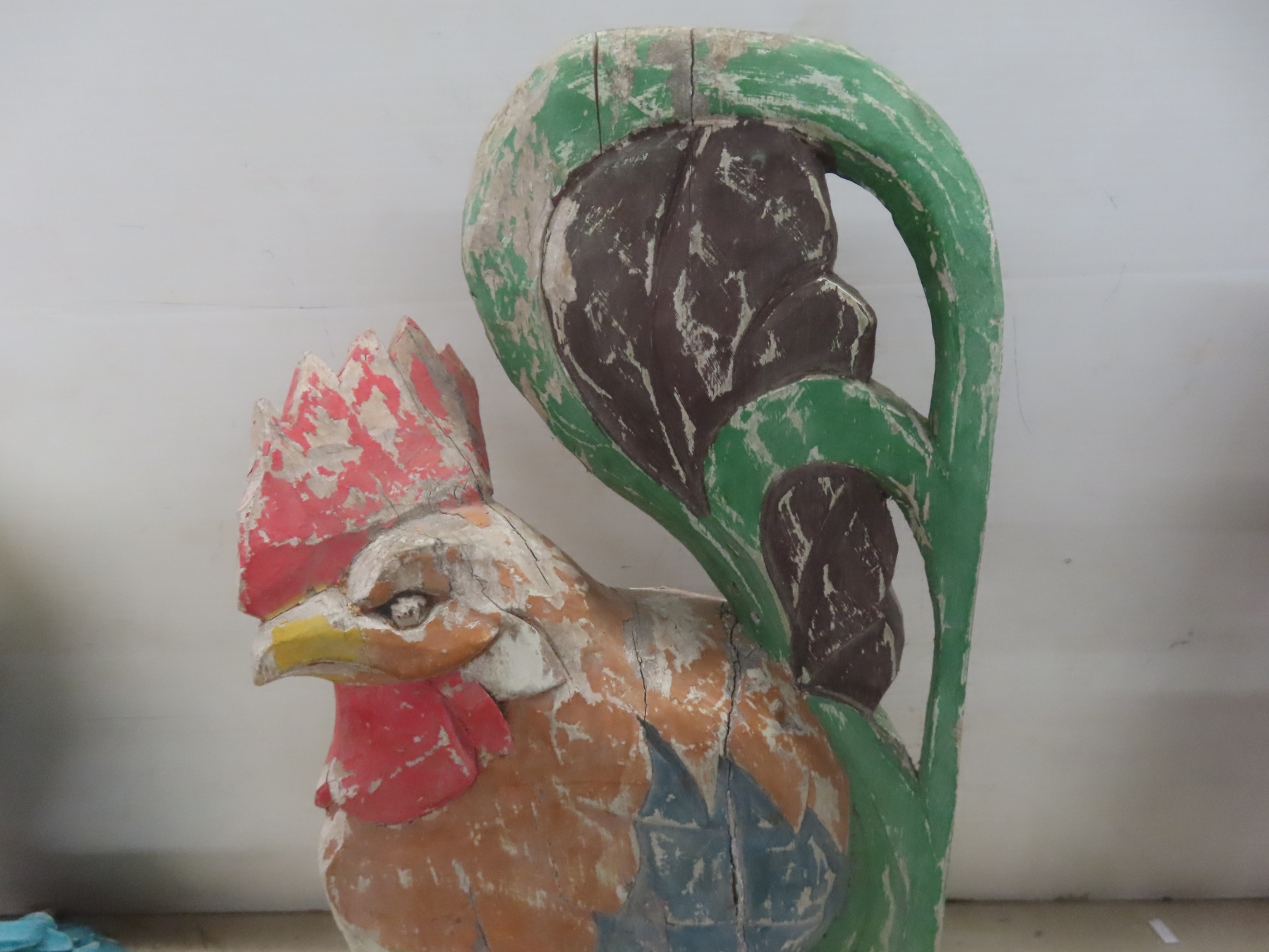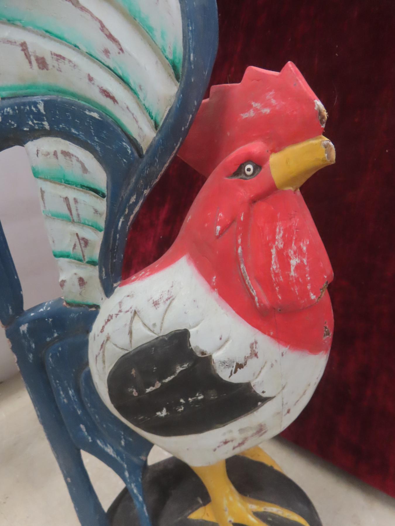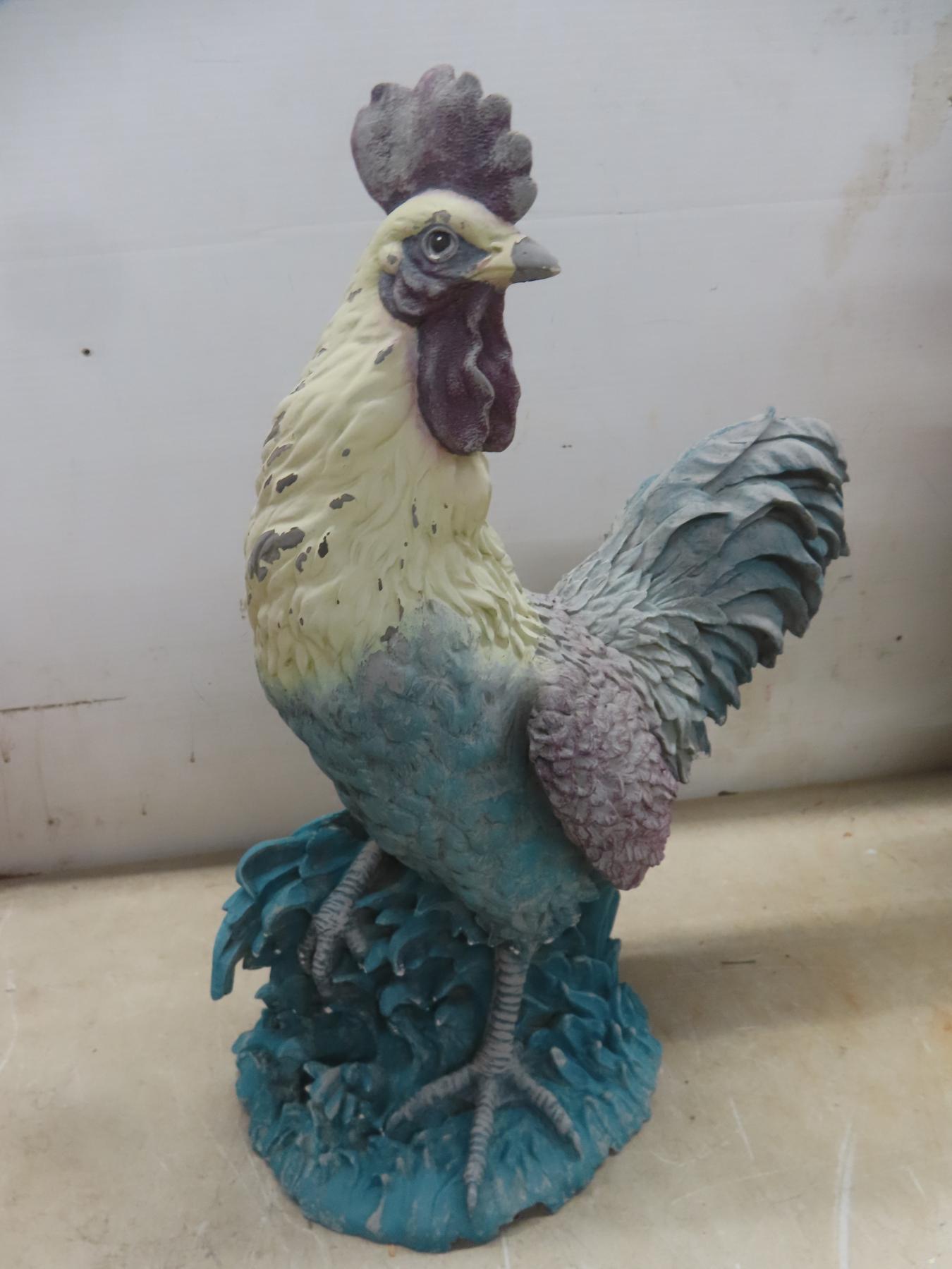 Three Rooster Figures – Two Wooden and One Resin, Tallest 20"