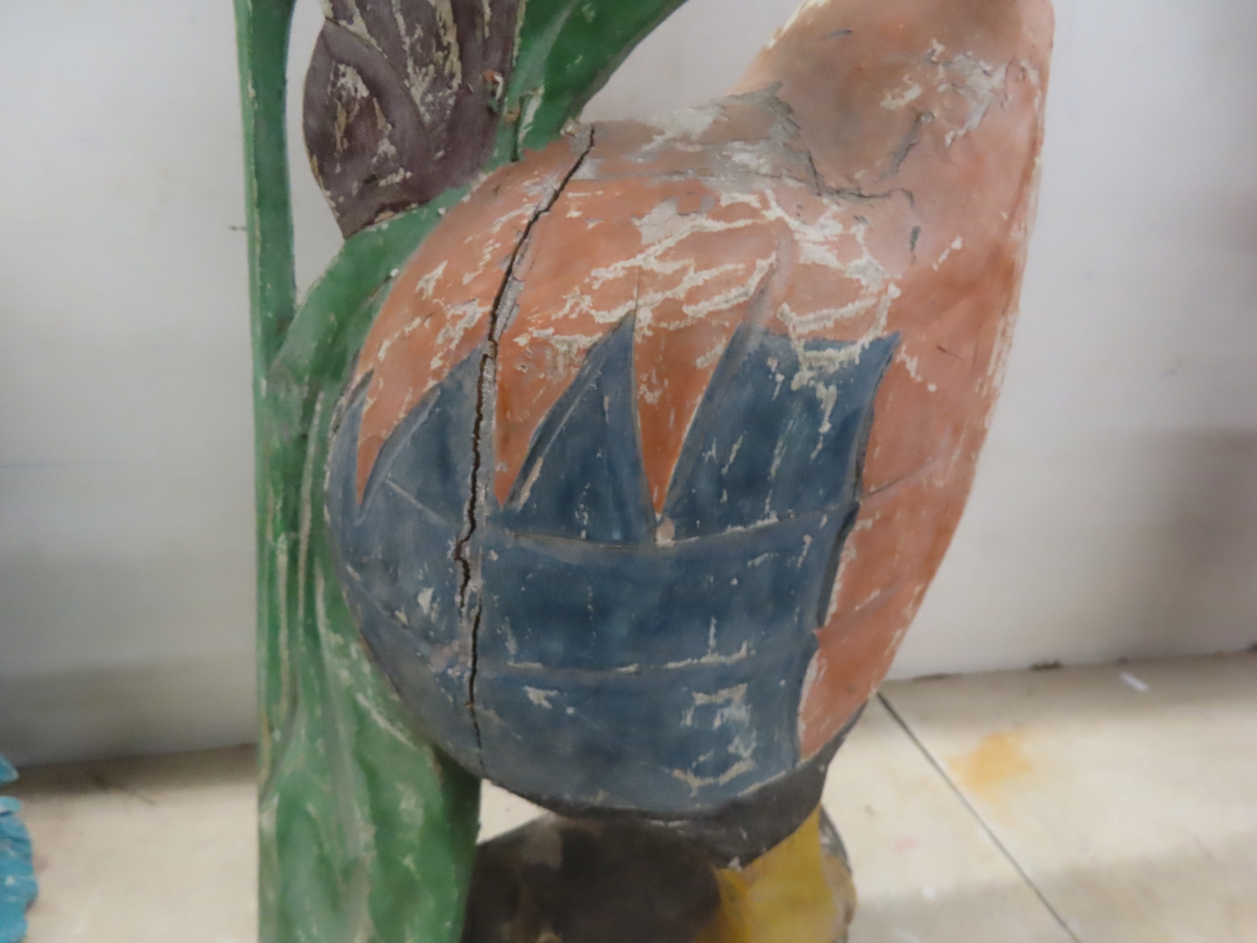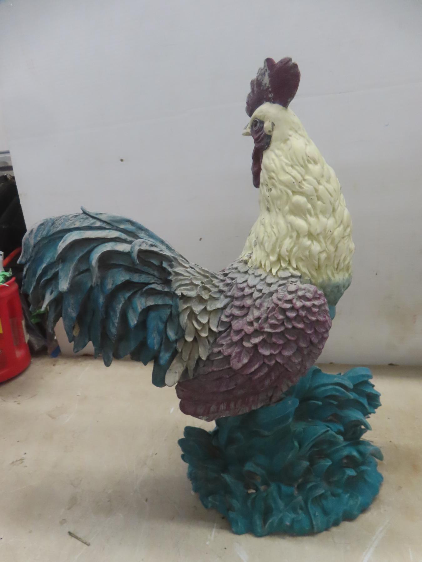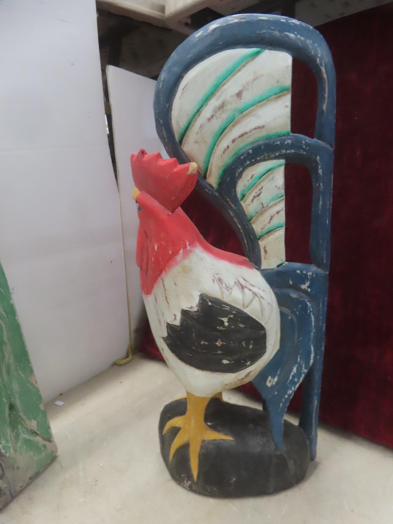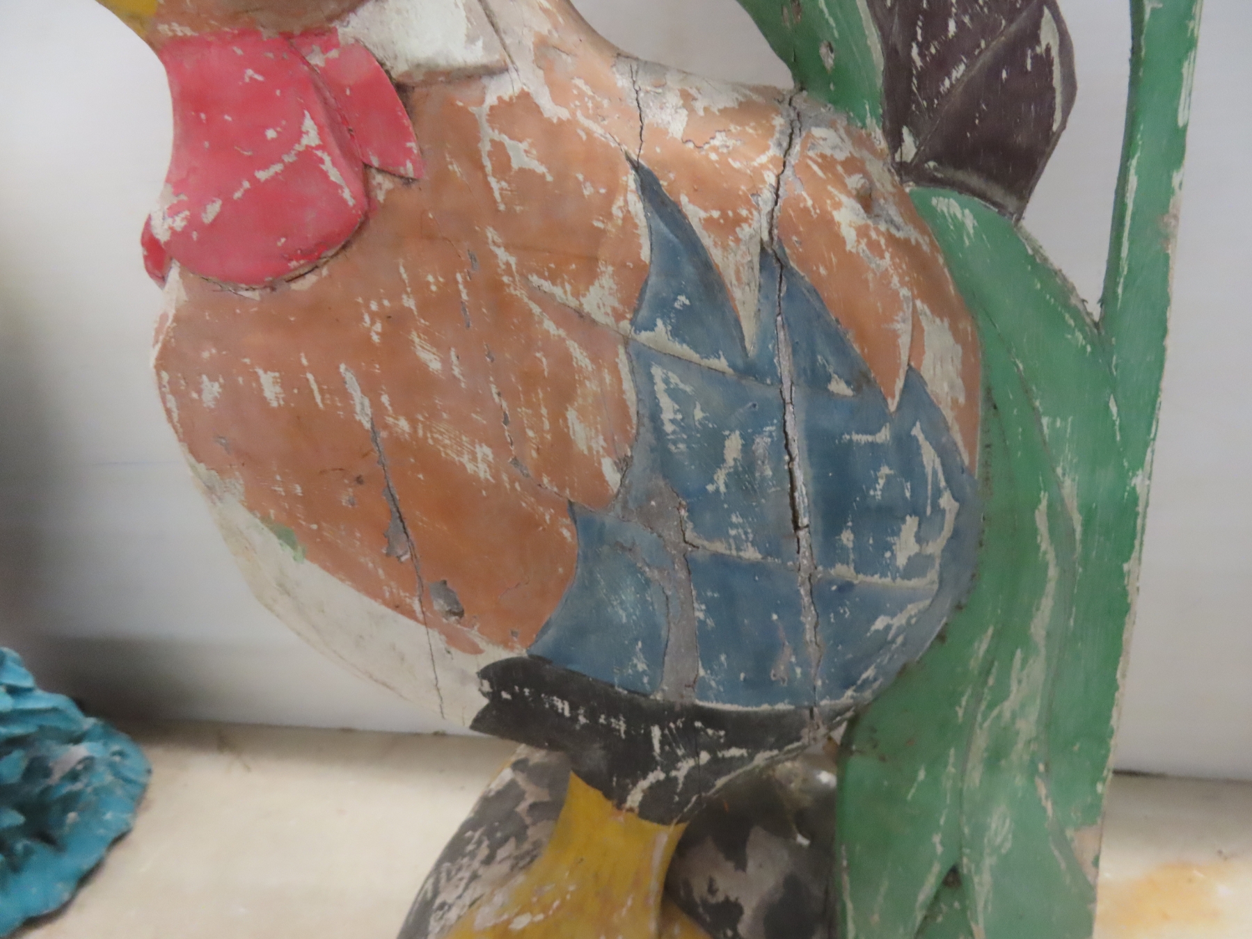 Three Rooster Figures – Two Wooden and One Resin, Tallest 20"