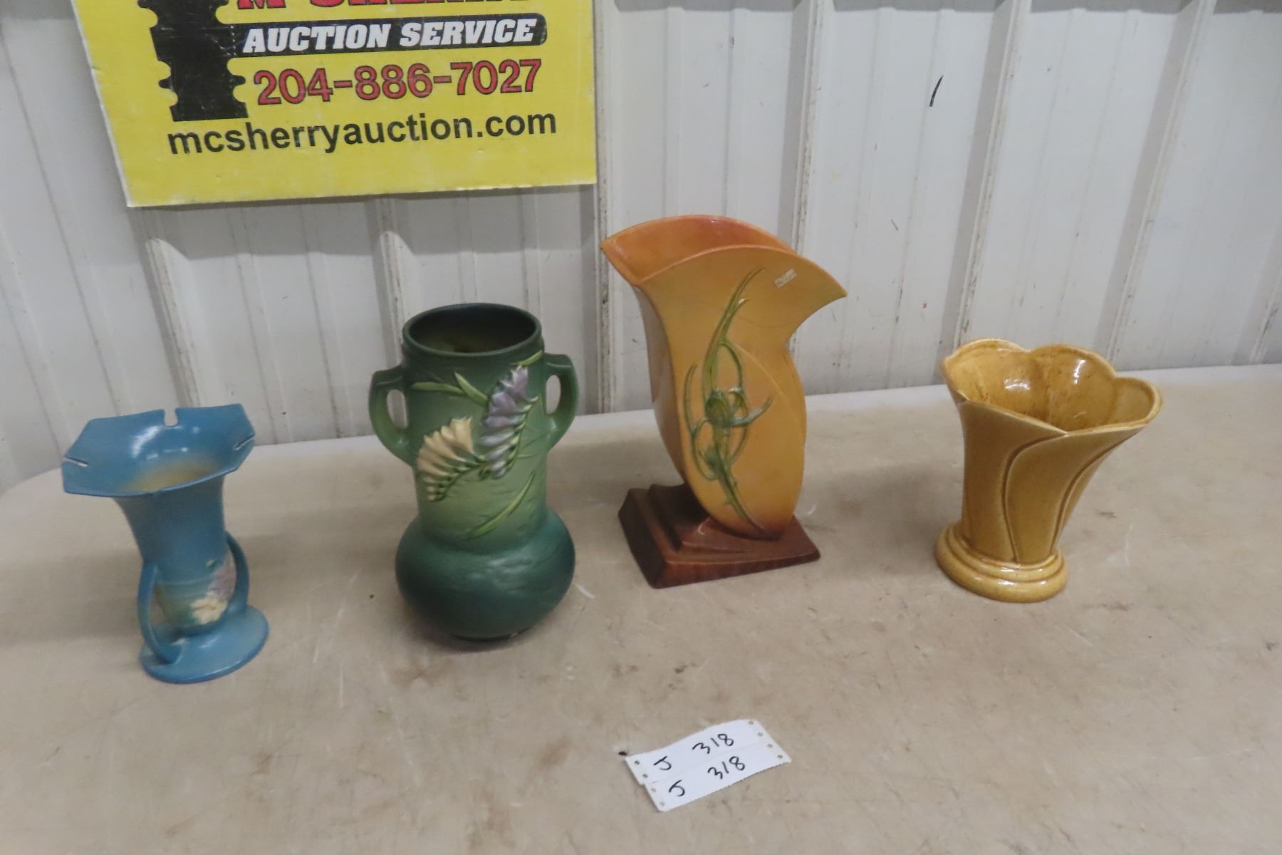 Three Rosaville Pieces and One Royal Haeger Piece (Large One Has Live Crack)