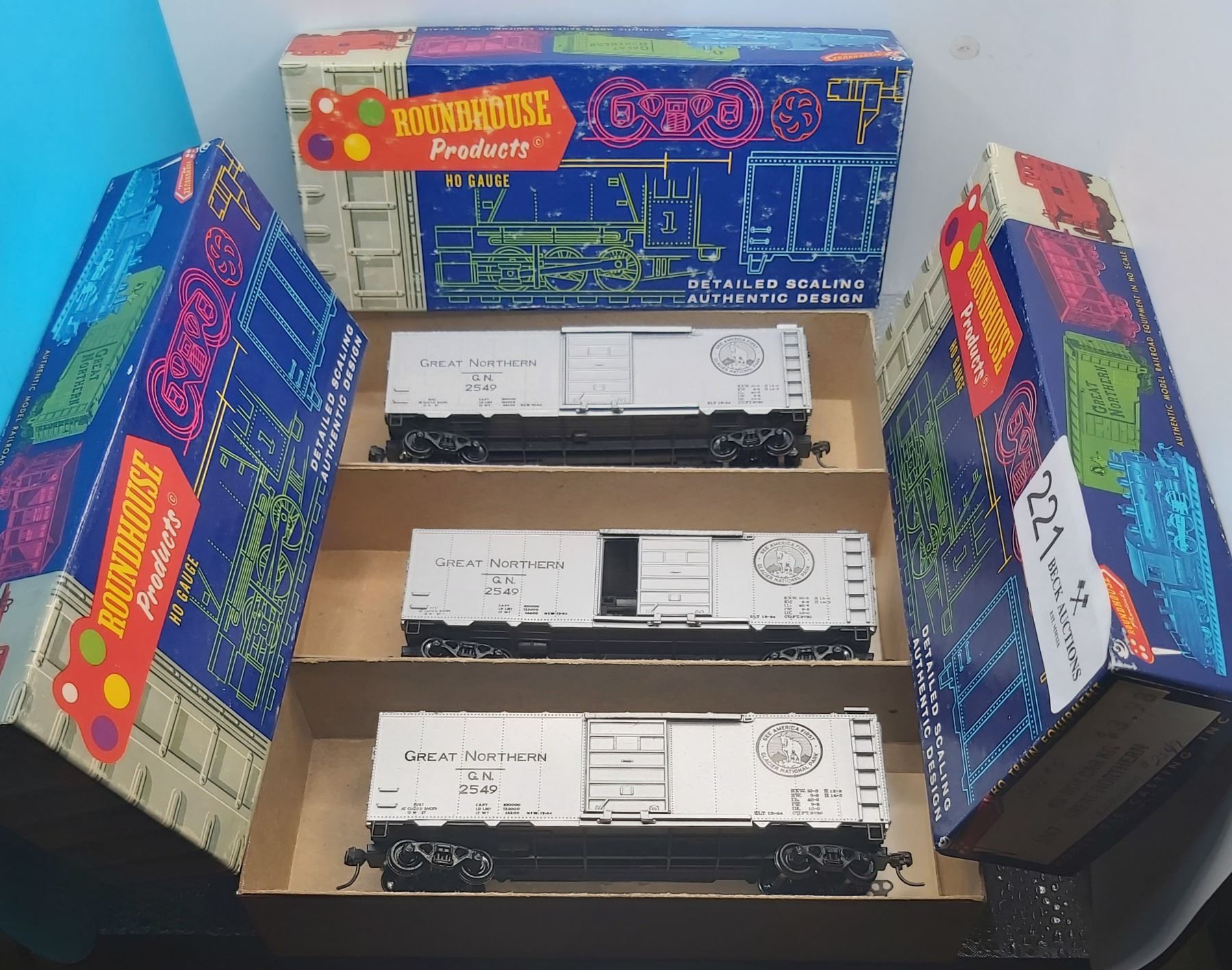 Three Roundhouse Great Northern Box Cars Never Run HO Scale