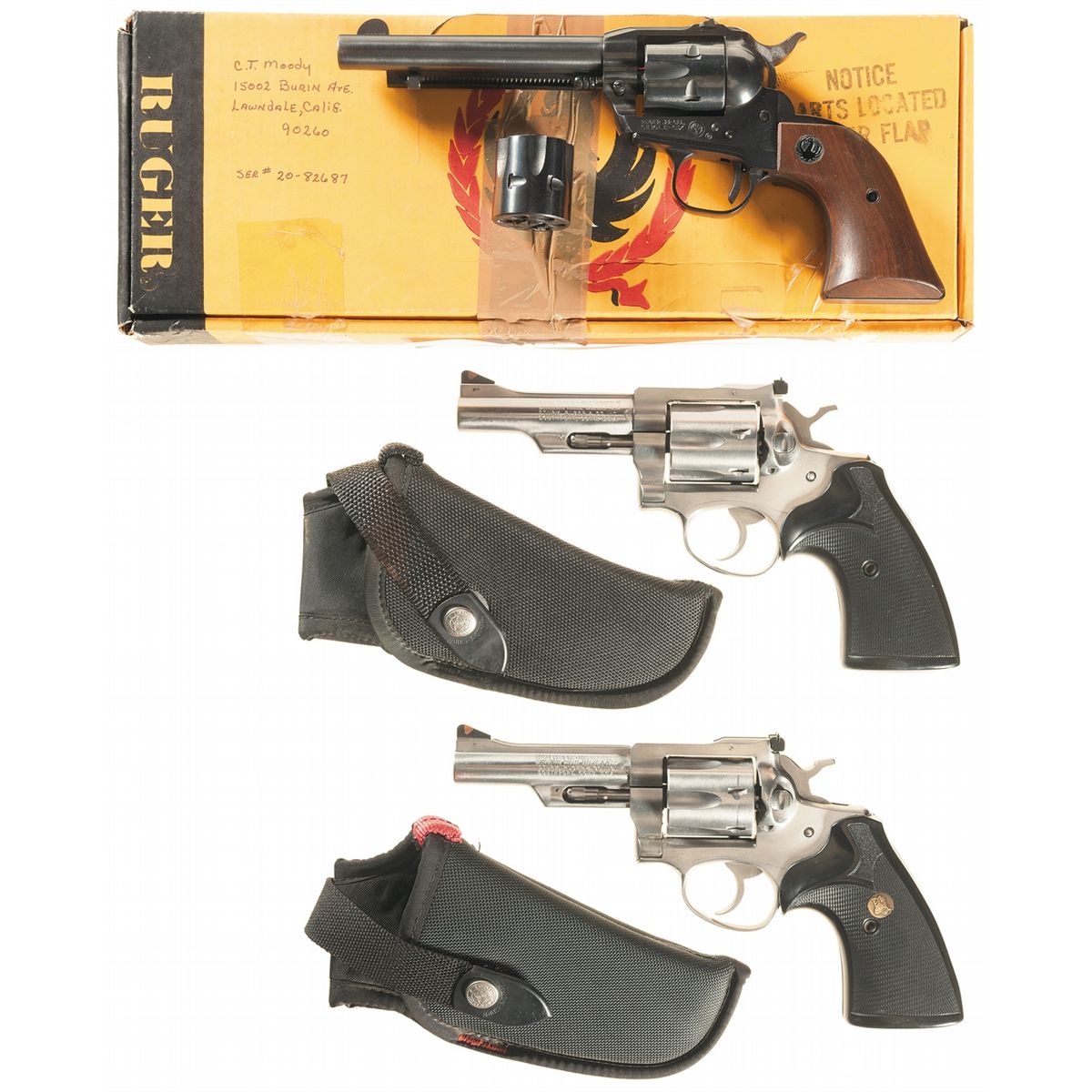 Manufactured in 1971. With 1 extra cylinder numbered to gun, 1 Randall model 3 Hunter with 6" blade and sheath, 1 Spec Plus machete with sheath, 3 leather holsters, 2 Butler Creek lens covers and 1 Star Firestar magazine.