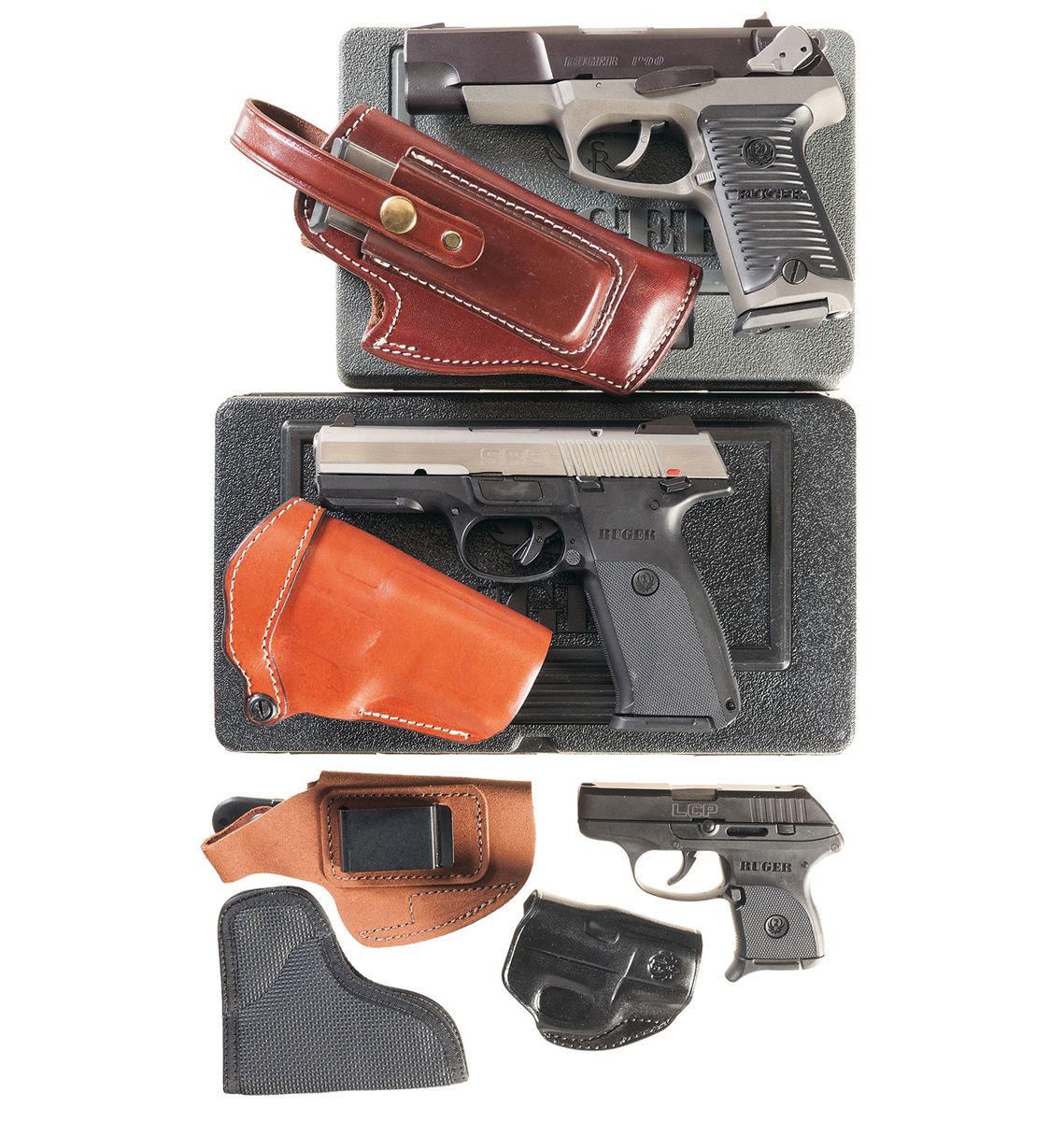 With Ruger soft case, 5 magazines total, 3 holsters, HKS Model 943 magazine loader.