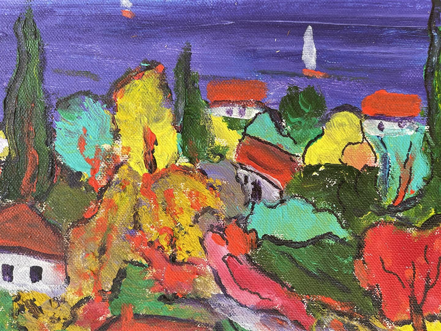 Wonderful original acrylic on canvas. Hand signed by Artist. This artwork comes framed ready to hang. Art size 12x16 inches. Frame size 18x22.