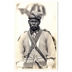 a) "Chief Tony Tommy" -- bold in blue crayon on verso, may be his signature. Real photo. [4-]. b) "Tom Tiger, Seminole Indian Chief. Colored litho. Trivial scrape at very top. [D3] c) "Chief Osceola of the Seminoles Confined in Court Room." Cheap colored litho. [2]