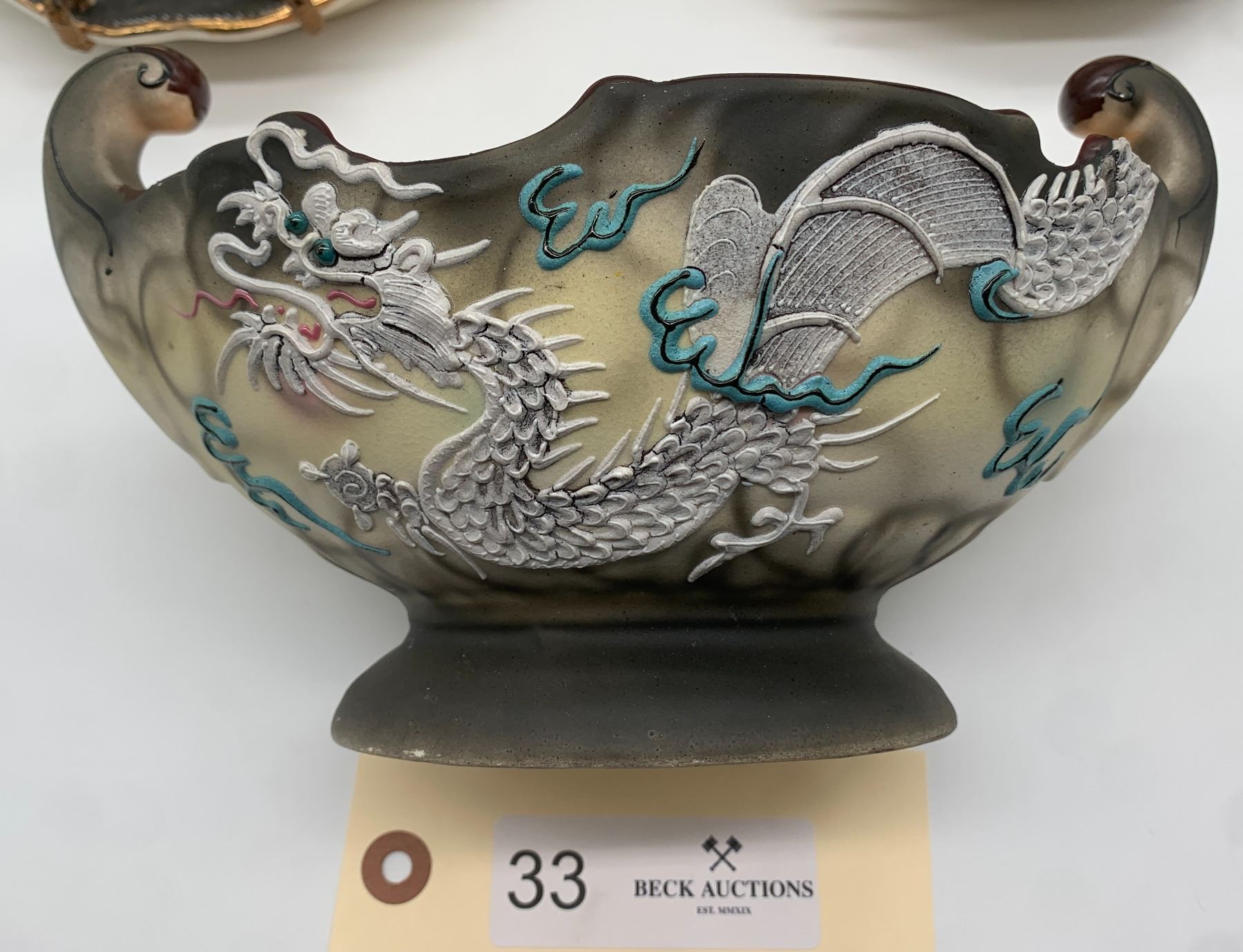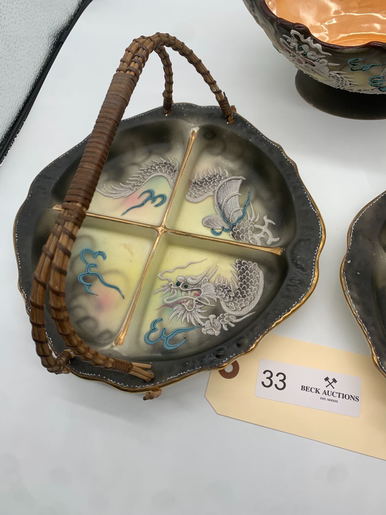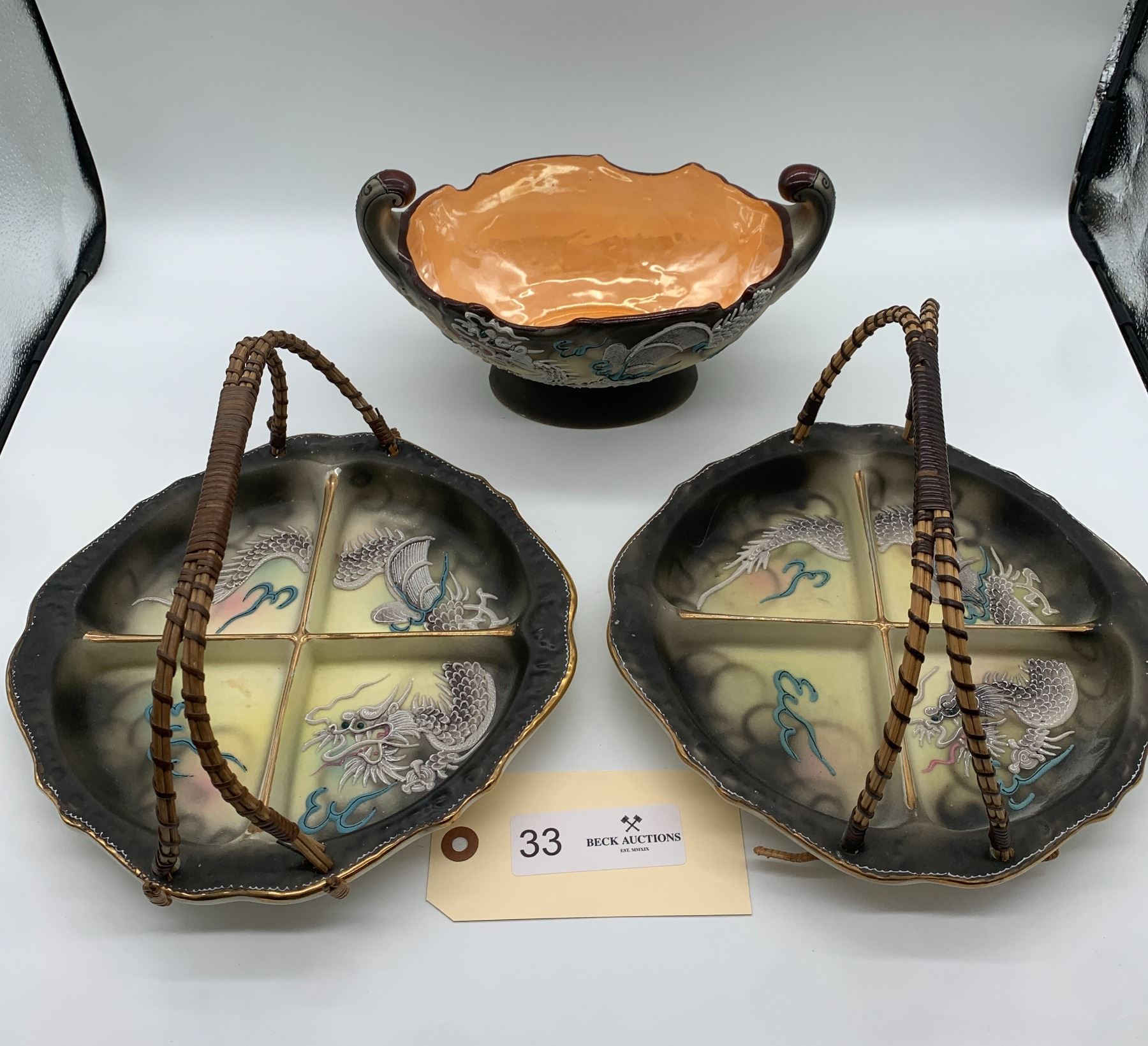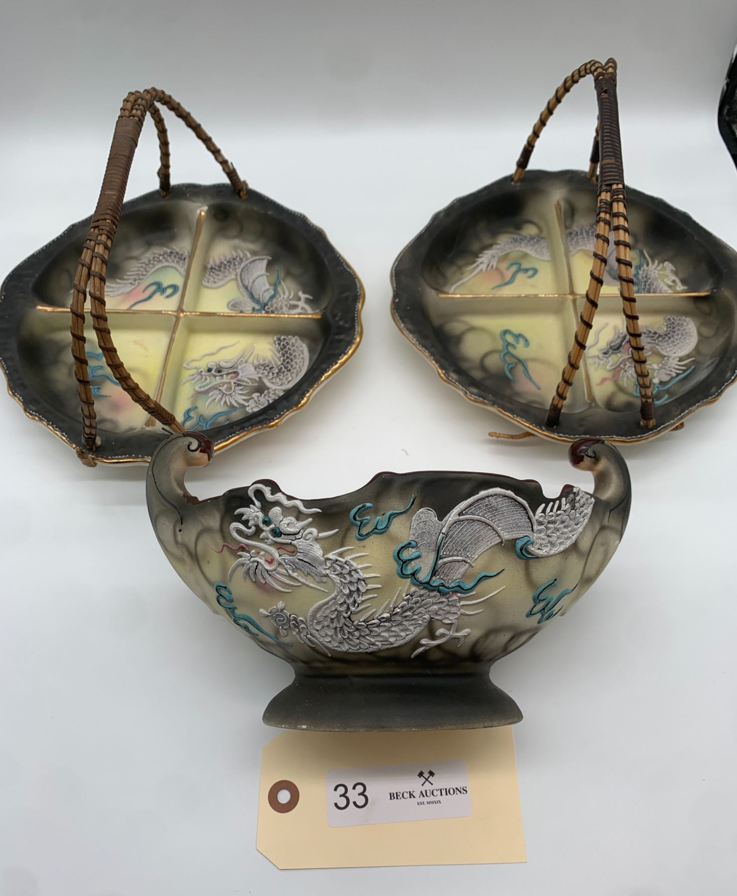 Three Serving Pieces of Moriage Japanese Dragonware Hand Painted 8.5" Inches in Diameter. Made in Japan Stamped.
