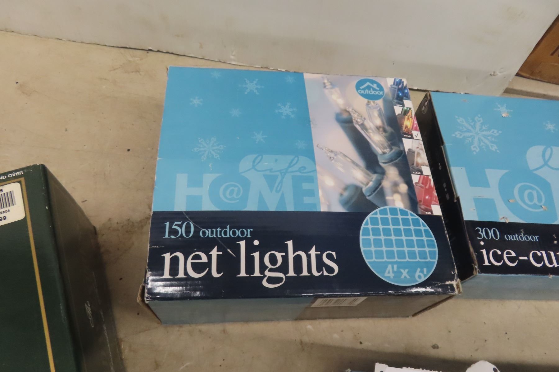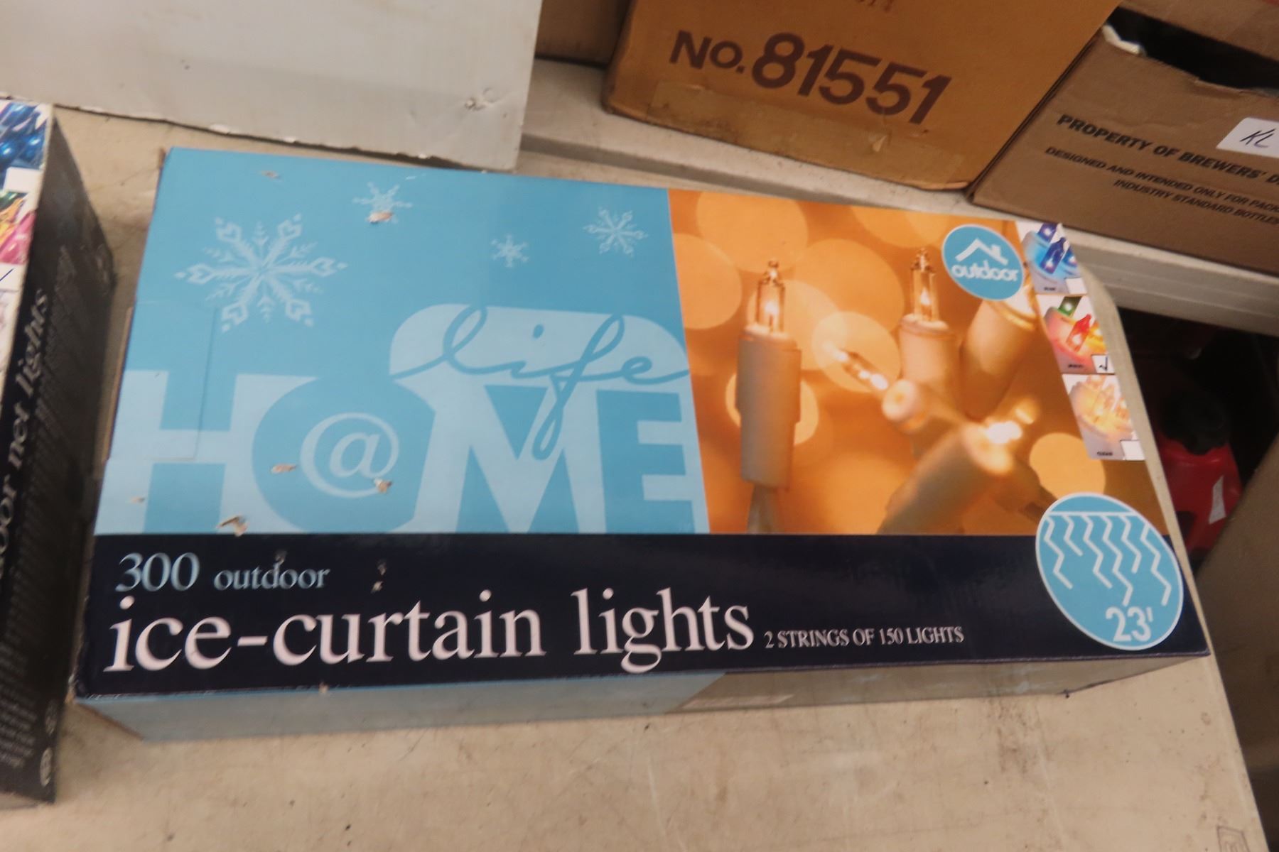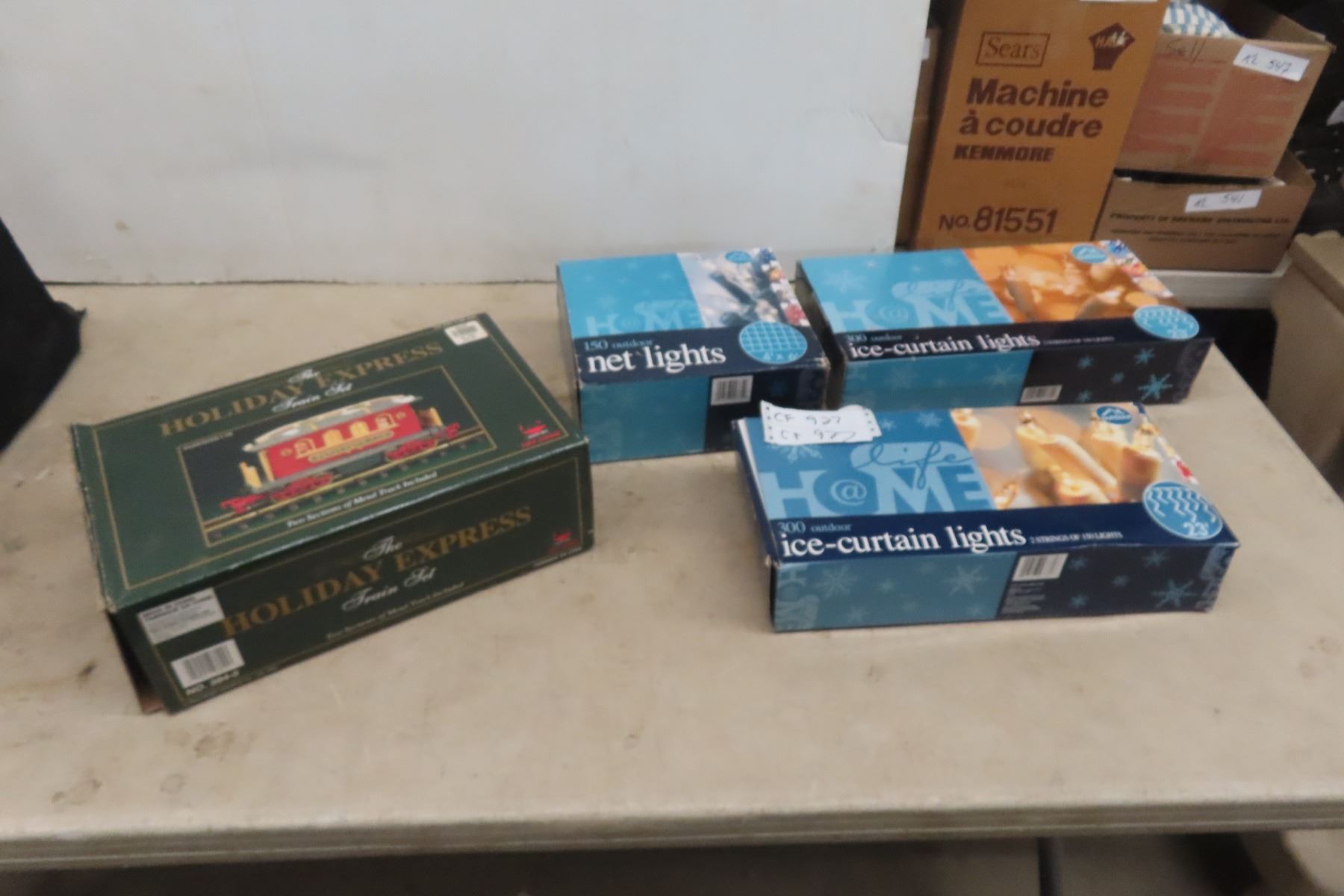 Three Sets of Christmas Lights: Ice Curtain and Net Lights; Holiday Express Passenger Car