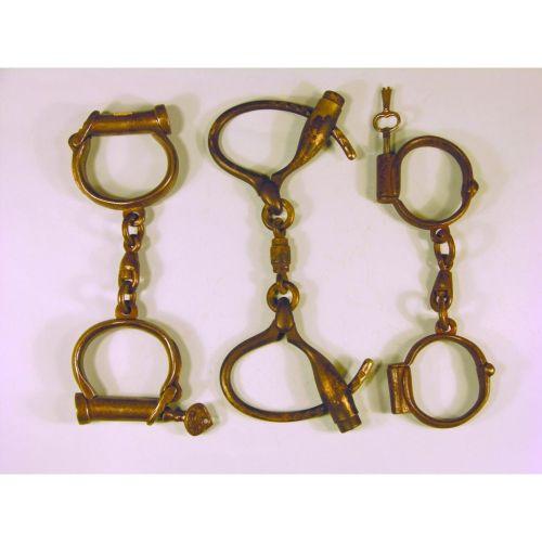 Three Sets of Handcuffs including M and C Back Strap Darby 1877, a Marlin Daley and a Plug Key Handcuff. Good condition, keys for two of the cuffs.