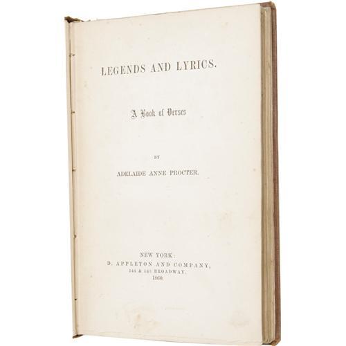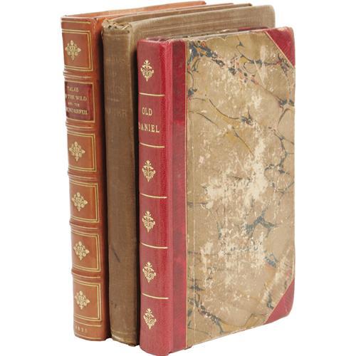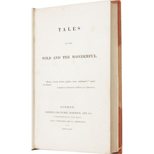 <B>Three Shelley-Related Anthologies.</B></I> George Borrow: <I>Tales of the Wild and Wonderful</B></I> (London: Hurst, Robinson, and Co., 1825), first edition, 356 pages, rebound half-leather with brown cloth and marbled endpapers, 12mo (4.75" x 7.5"). The copy presented here is very good, though the half title is missing, previous owner's bookplate on front pastedown, top 1.5" of front board sunned, .125" x .25" tear at lower back corner, easily glued.<BR><BR>Margaret Jane Moore, Countess of Mountcashell: <I>The Stories of Old Daniel</B></I> (London: M ary .J ane . Godwin and Co., 1825), ninth edition, 308 pages, red half-leather with marbled boards, 12mo (4.25" x 7"). This was first issued in 1808. It was originally attributed to Charles Lamb, but was actually by M. J. Moore, who first met William Godwin in 1800 during his trip to Ireland. In 1805, she left her husband and children to live under the assumed name of "Mrs. Mason", taken from one of Mary Wollstonecraft fictional characters. With the death of Mary Wollstonecraft, William Godwin found himself not only bereaved, but also the widower father of two children: Mary Wollstonecraft Godwin (later Shelley) and Fanny Imlay. His marriage to Mary Jane Godwin added three more. The Godwins started the M. J. Godwin publishing company to support their large family. Stories of Old Daniel were part of Godwin's Juvenile Library and were very successful. All of the early editions are rare. Respined. Boards rubbed and soiled, corners rubbed, heavy foxing from front free endpaper to the title page. Elsewhere, textblock is lightly foxed. 1827 gift inscription on front free endpaper.<BR><BR>Adelaide Anne Proctor: <I>Legends and Lyrics. A Book of Verses</B></I> (New York: D. Appleton and Co., 1860), 264 pages. Textblock lightly foxed, general wear to brown cloth boards, tips of corners rubbed, head and tail of spine tattered. Overall, this is a handsome collection of nineteenth century anthologies. <I>From the Betty Bennett Collection.</B></I><BR><BR><b>Shipping:</b> Books & Catalogs (<a target="_blank" href="http://www.heritageauctions.com/common/shipping.php">view shipping information</a>)