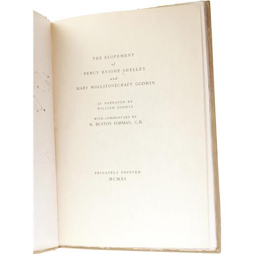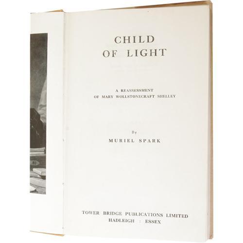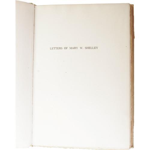 <B>Three Shelley-Related Biographies & a Book of Shelley Letters.</B></I> Muriel Spark: <I>Child of Light: a Reassessment of Mary Wollstonecraft Shelley</B></I> (Essex: Tower Bridge Publications, 1951), first edition, 235 pages with index, orange cloth with red lettering on spine, 8vo (5.5" x 8.75"), dust jacket (in protective Mylar). Very good, with very minimal edge wear and bumped corners.<BR><BR>Walter Peck, editor: <I>A Philosophical View of Reform by Percy Bysshe Shelley</B></I> (Privately printed for Carl Pforzheimer, 1930), limited edition, 67 pages, beige cloth with gilt lettering on spine, 8vo (6.75" x 9.75"), glassine cover. One of 50 copies printed. The book is about fine, with no major flaws. The glassine cover shows considerable wear on the edges and spine.<BR><BR>William Godwin: <I>The Elopement of Percy Bysshe Shelley and Mary Wollstonecraft Godwin</B></I> (Privately printed for William K. Bixby by The Bibliophile Society, 1911), limited edition, 24 pages, beige cloth with gilt lettering on front board, 8vo (6.75" x 9.25"), no dust jacket. Deckled fore-edge. 79 of 200 copies. Inscription on front free endpaper reads, "<I>F.O. Sylvester/With regards of/W.K. Bixby/St. ? 3/14/12</B></I>". Soiled light brown cloth on boards, else fine.<BR><BR><I>Letters of Mary W. Shelley (Mostly Unpublished)</B></I> (Norwood, Massachusetts: The Plimpton Press, 1918), first edition (printed only for members of The Bibliophile Society), 189 pages, beige boards with brown paper affixed to panels and gilt lettering on spine, 8vo (6.25" x 9"), no dust jacket. Introduction and notes by Henry Harper. This copy is good, with a chip at the head of the spine, moderate edge wear, and a tear of the brown paper on the edge of the back board. A wonderful collection of Shelley material. <I>From the Betty Bennett Collection.</B></I><BR><BR><b>Shipping:</b> Books & Catalogs (<a target="_blank" href="http://www.heritageauctions.com/common/shipping.php">view shipping information</a>)