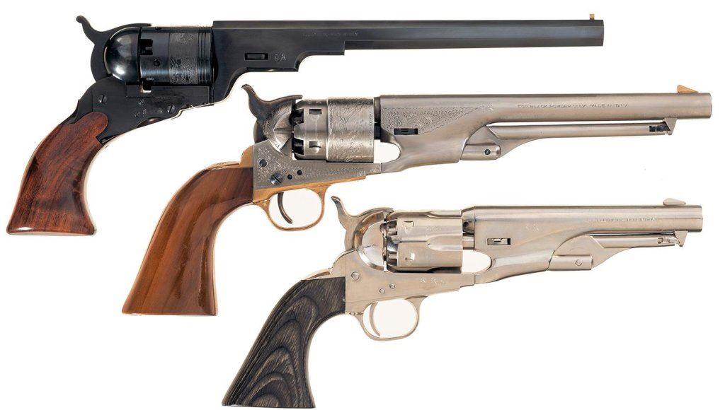 Three Single Action Percussion Revolvers -A) F. LLI Pietta 1836 Texas Paterson Revolver with Case