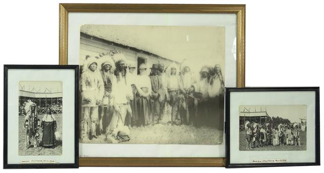 Early 1900s, Three old photos of multiple personae in full Native attire.