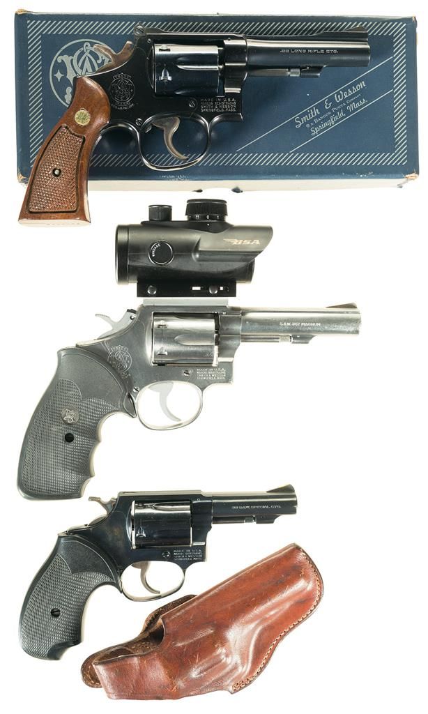 Three Smith & Wesson Double Action Revolvers -A) Smith & Wesson Model 18-4 Revolver with Box