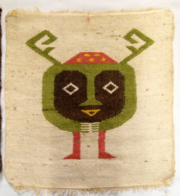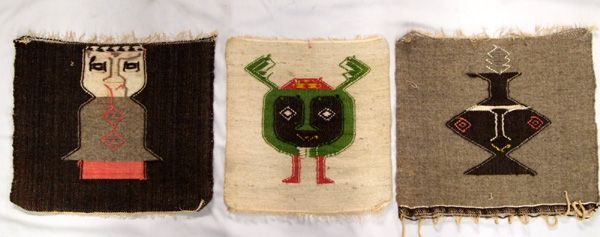 Three South American Throws or Wall Hangings. largest is approx. 14''H x 16.75''L Fringed on tops and bottoms.