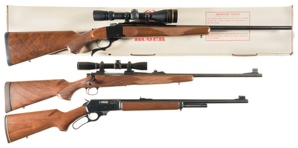 Three Sporting Longarms -A) Ruger No. 1 Single Shot Falling Block Rifle with Scope and Box