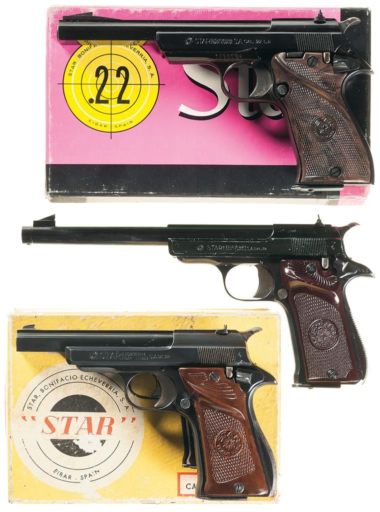 Three Star Semi-Automatic Pistols -A) Star Model FR Sport Pistol with Barrel Weight and Box