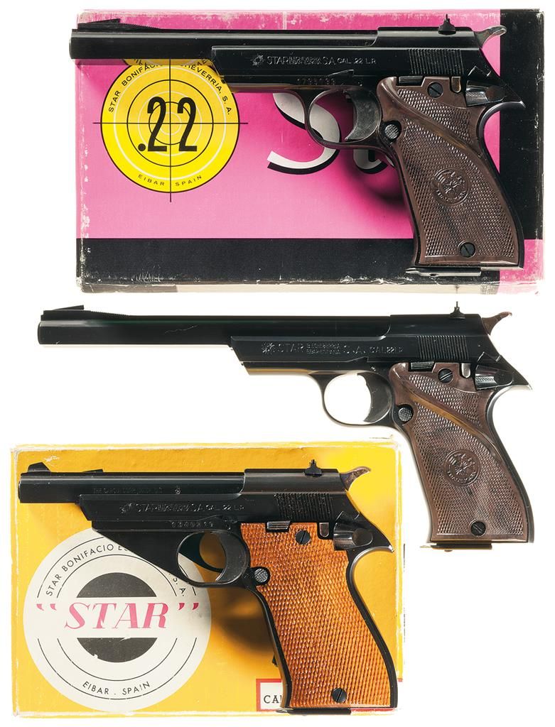 Three Star Semi-Automatic Pistols -A) Star Model FR Sport with Barrel Weight and Box