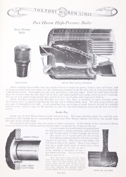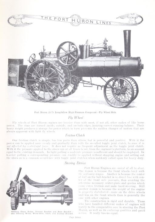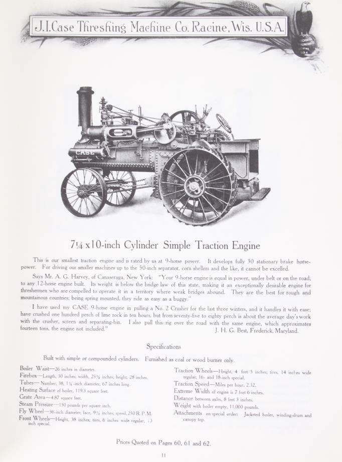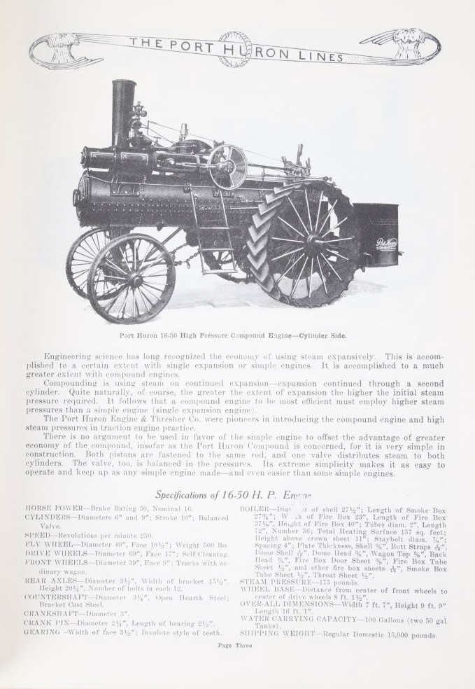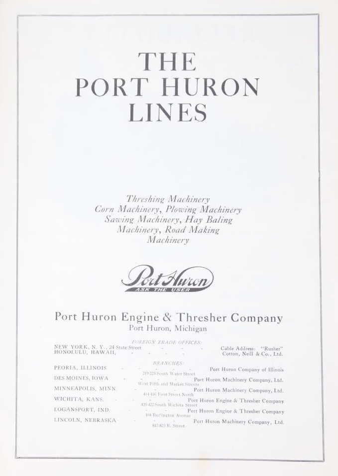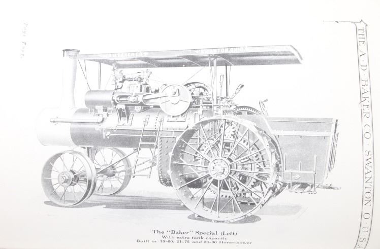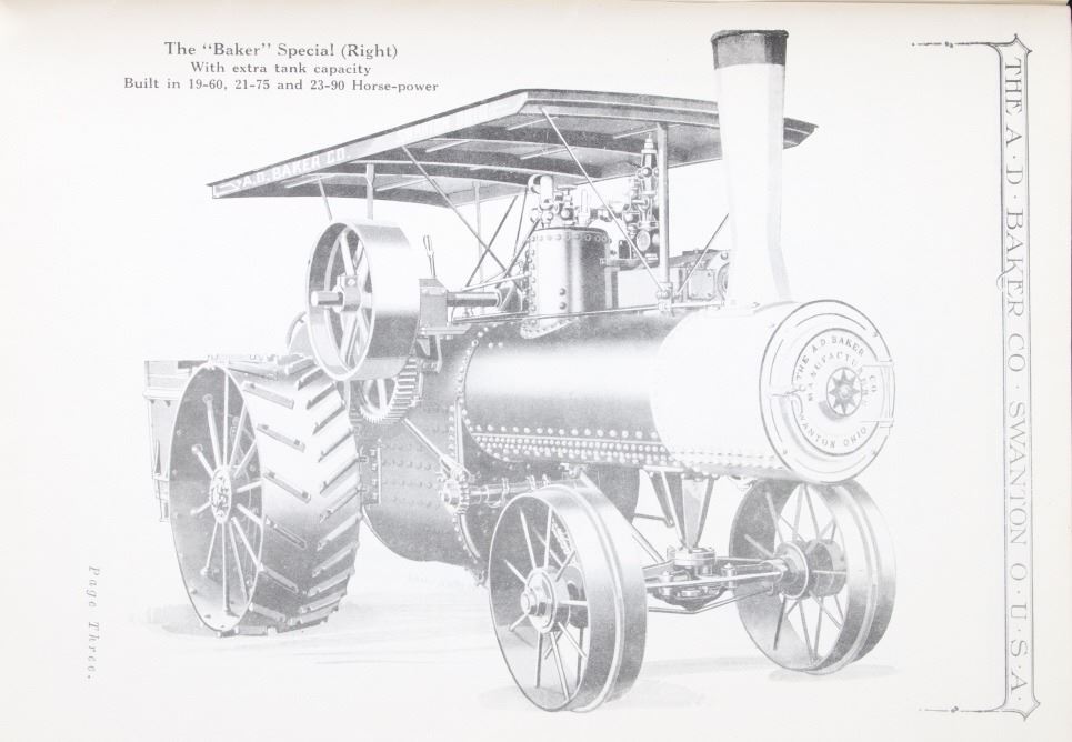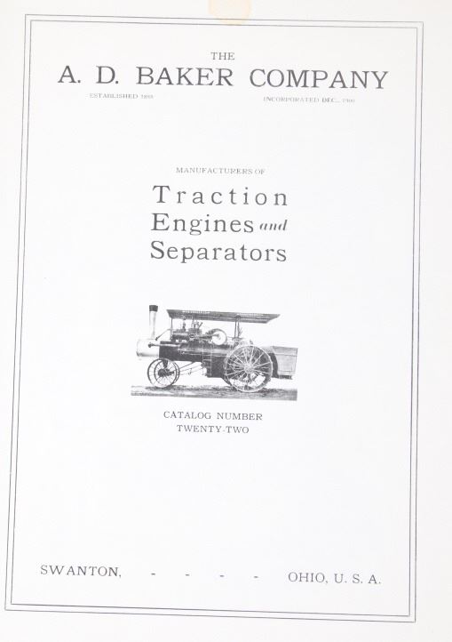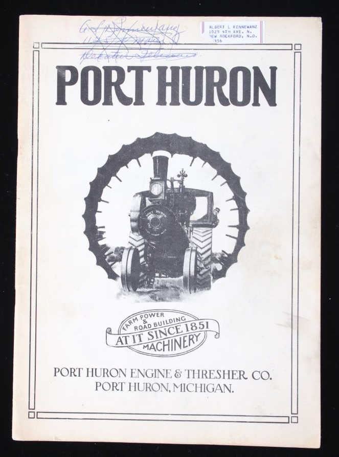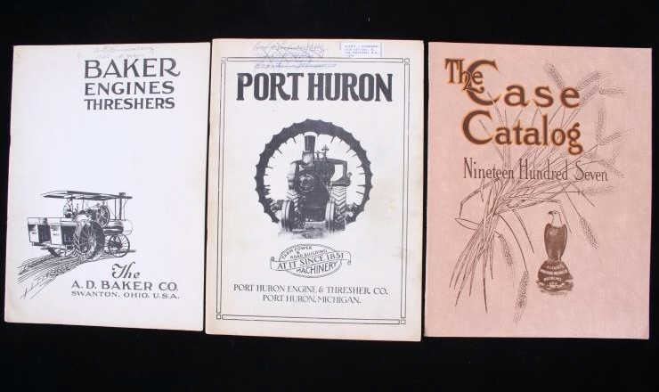 Featured in this lot is a collection of three steam engine catalog from various companies circa. 1907-1917. The catalogs featured are "Baker Engines Threshers, The A. D. Baker Co.", The Case Catalog, J. I. Case Threshing Machine Co." and "Port Huron Engine & Thresher Co.". The books outline the newest steam engine tractors and harvesters that year, with data, illustrations and descriptions on the machines. The catalogs also feature tools and parts to work on new or existing machines. All the catalog books are in good condition with the Port Huron book showing some staining on the the front and back covers. The interior pages of it are in good condition with no signs of staining, foxing, or tears. The rest of the interior pages of the other catalogs are in good condition as well. The largest catalog measures 10 3/4" L x 8 3/8" W x 2/16" D, while the smallest measures 10 3/4" L x 7 7/8" W x 2/16" D.