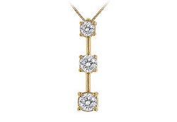 Three round diamonds are set in a 14K yellow gold 4-prong mounting. Symbolizing a past present & future togetherness this pendant has a total diamond weight (TDW) of 1.00 ct.