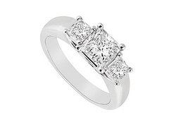 Representing past present and future three princess-cut diamonds are prong-set in the center. Made in 14K white gold this three stone ring has a total weight (TDW) of 0.50 ct.