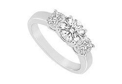 Representing past present and future three brilliant-cut round diamonds are prong-set in the center. Made in 14K white gold this three stone ring has a total weight (TDW) of 1.00 ct.