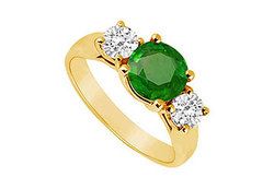 Two brilliant-cut round diamonds are prong-set beside a vibrant green emerald. These three stones are a symbol of your past present and the future. Made in 14K yellow gold this ring has a total gem weight (TGW) of 1.25 ct.