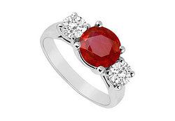 Two brilliant-cut round diamonds are prong-set beside a vibrant red ruby. These three stones are a symbol of your past present and the future. Made in 14K white gold this ring has a total gem weight (TGW) of 2.00 ct.
