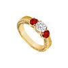 Signifying your past present and future these three scintillating stones comprise two radiant rubies & a center-set brilliant-cut round diamond. This ring is made in 14K yellow gold and has a total weight (TGW) of 0.50 ct.