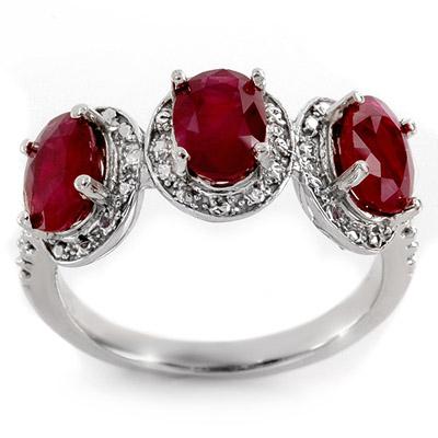 Three-Stone3.08 ctw Diamond Ruby Ring Gold Jewelry-3.08 ctw Diamond & Ruby Fancy Ladies Ring in 10K White Gold Gemstone: 3 Oval Cut Ruby 3.00 ctw Diamond: 4 Round Cut 0.08 ctw Clarity: SI2-I1 Color: H-K Gold Weight: Approximately 3.90 grams Size: 6 3/4 Dimensions: Approx. 5/16 x 3/4" Item #: 3127C0RUB-W Retail Value: $2,480.00