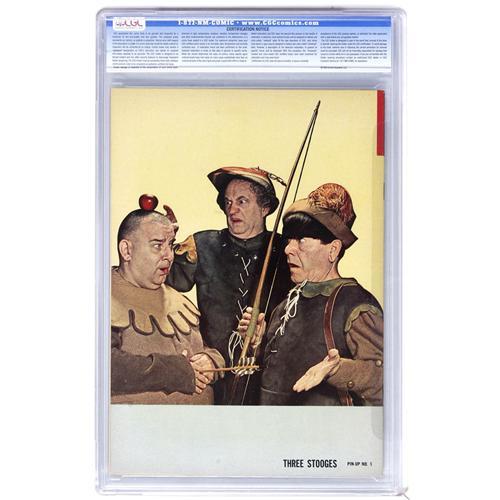 <B>Three Stooges #10 File Copy (Gold Key, 1962) CGC NM 9.4 Off-white to white pages.</B></I> Photo cover. Back cover pin-up. First Gold Key issue. Professor Putter backup story. Overstreet 2006 NM- 9.2 value = $170. CGC census 5/06: 7 in 9.4, 5 higher. <I>From the Random House Archives</B></I>. <BR><BR><B>Important notice:</B> Heritage usually auctions material at the rate of 200-250 lots per hour. On some occasions eBay Live bid software or the Internet may not be able to keep up with the pace of the auction. We recommend placing a realistic absentee bid now as insurance to avoid disappointment. Occasionally the auctioneer may eliminate or reject an eBay Live bid, and the auctioneer may also reopen a lot after the close of the eBay live bidding (usually because we missed an audience bid), and may reject your bid even if it shows you as the winning bidder. By bidding via eBay Live, you agree that Heritage may award the lot to another bidder at its sole discretion under the circumstances described above or any other reasonable circumstances. Since eBay bids are not shown to us until we open the lot on the floor, we treat those bids just like floor bids. In most cases the floor responds before the eBay bid is presented to us, due to Internet lag time, so for consistency we have made it a policy that floor bids are always considered first over tie eBay live bids. Also please note that all Heritage lots purchased through eBay Live carry a 22.5% Buyer's Premium. Please make sure you read the Terms and Conditions before you bid. This lot is being auctioned in conjunction with a live floor auction by Heritage Auction Galleries. All final auction and invoice information will be supplied by Heritage Auction Galleries, and all other information should be considered preliminary. Lot:41001 <BR><BR><B>Winning Notification and Billing:</B> After the FINAL session in this auction is complete, Heritage will send e-mail and snail mail invoices. This process normally takes several days. All final auction and invoice information will be supplied by Heritage Auction Galleries, and all other information should be considered preliminary. <BR><BR>This auction will be conducted on a live auction floor and over the Internet through eBay Live. If you choose to place an absentee bid, please take a moment to <font color='#0000ff'><u><a href='http://pages.ebay.com/liveauctions/help/before/laabsentee.html'>learn how eBay Live absentee bidding works</a></u></font><font color='#000000'>