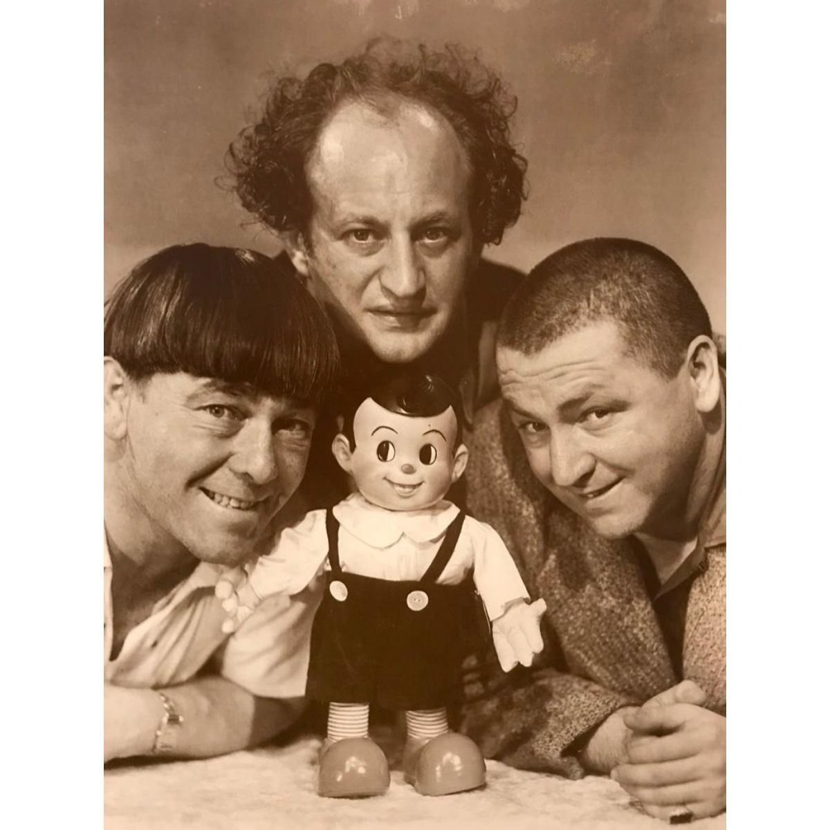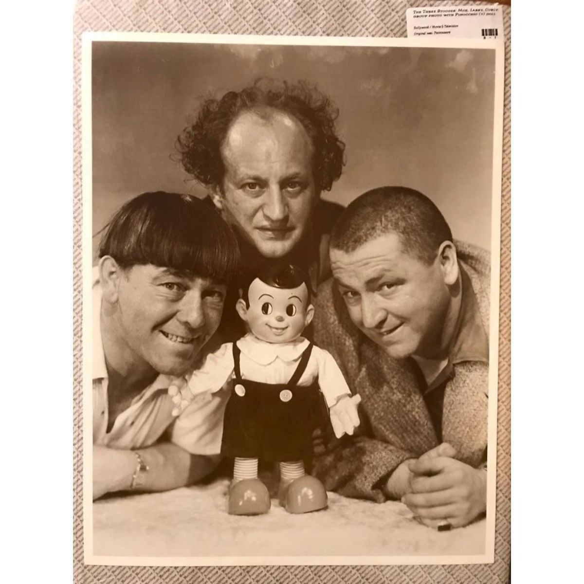 Three Stooges sepia-tone photo print. Created in the early 1990's for The American Heritage Galleries. Printed on cardstock, in original gallery packaging. 11" X 14".Â