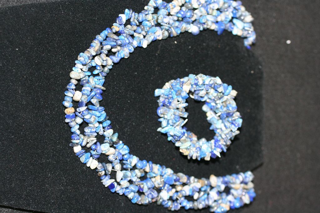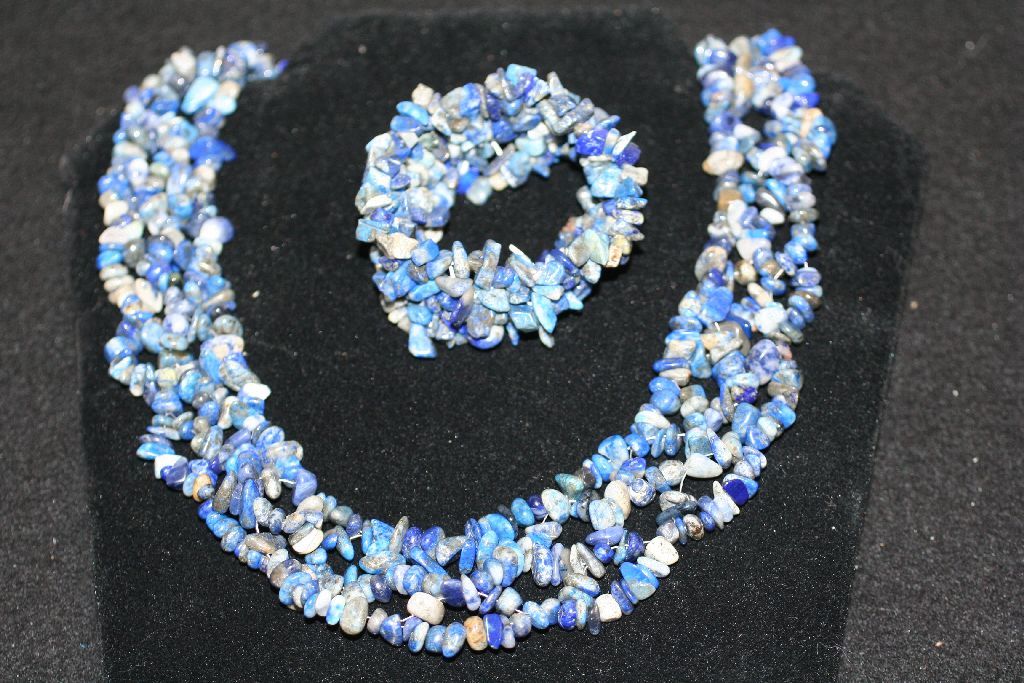 Three Strand Pure Lapis 18" Necklace & Three Strand Bracelet Fits All