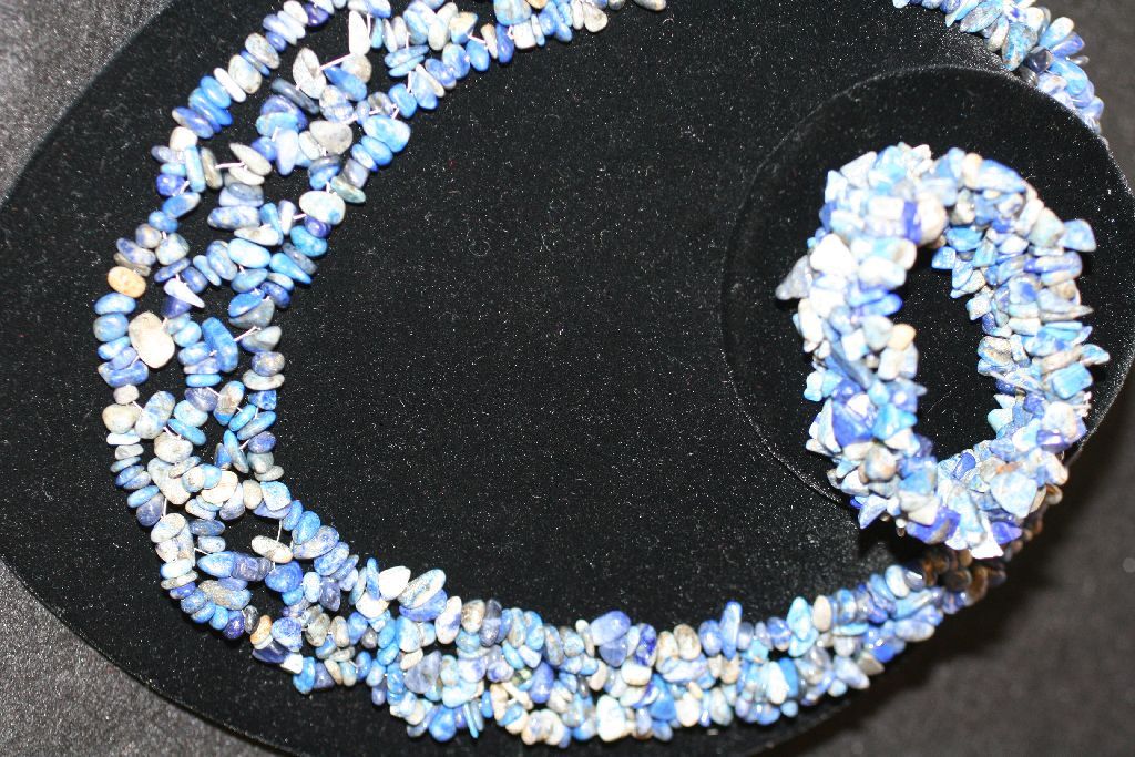 Three Strand Pure Lapis 18" Necklace W/Bracelet Fits All