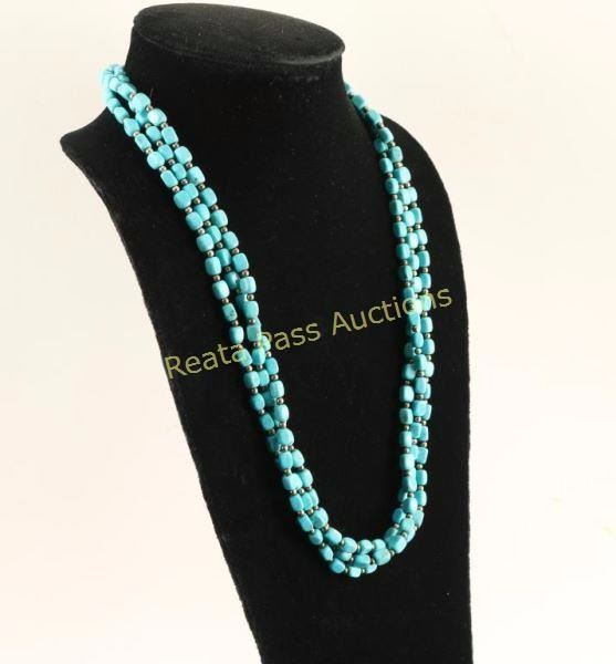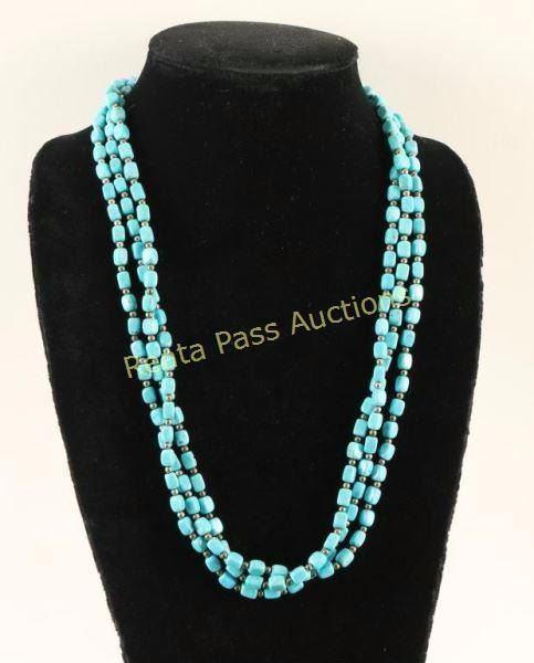 Gem quality with sleeping beauty turquoise accented with small sterling silver beads.