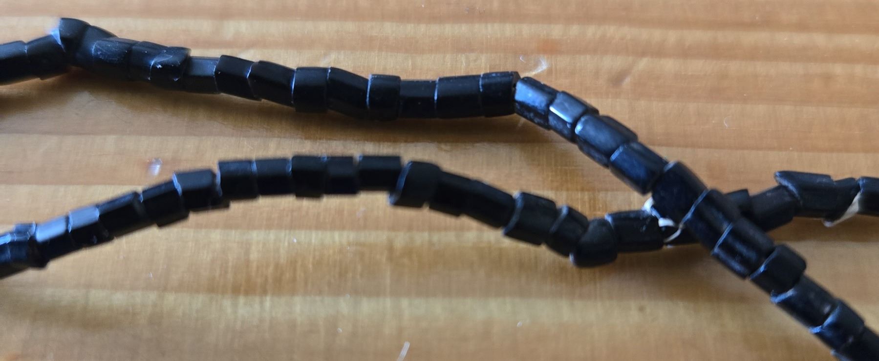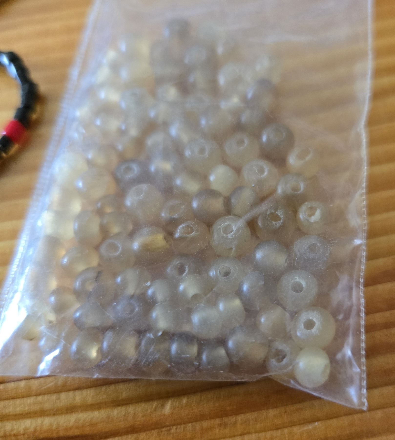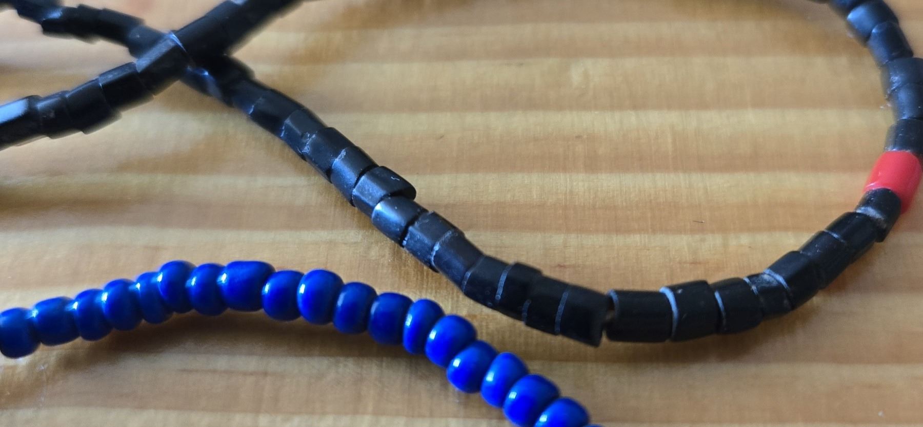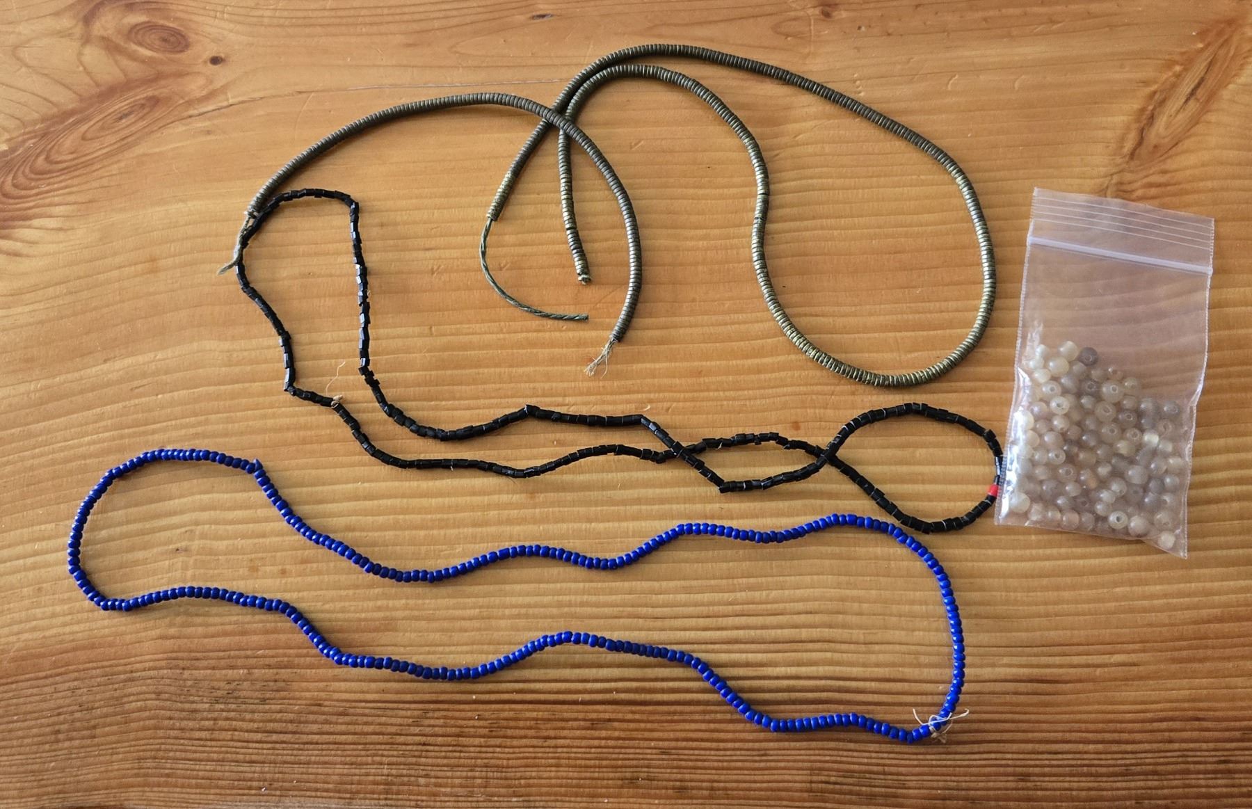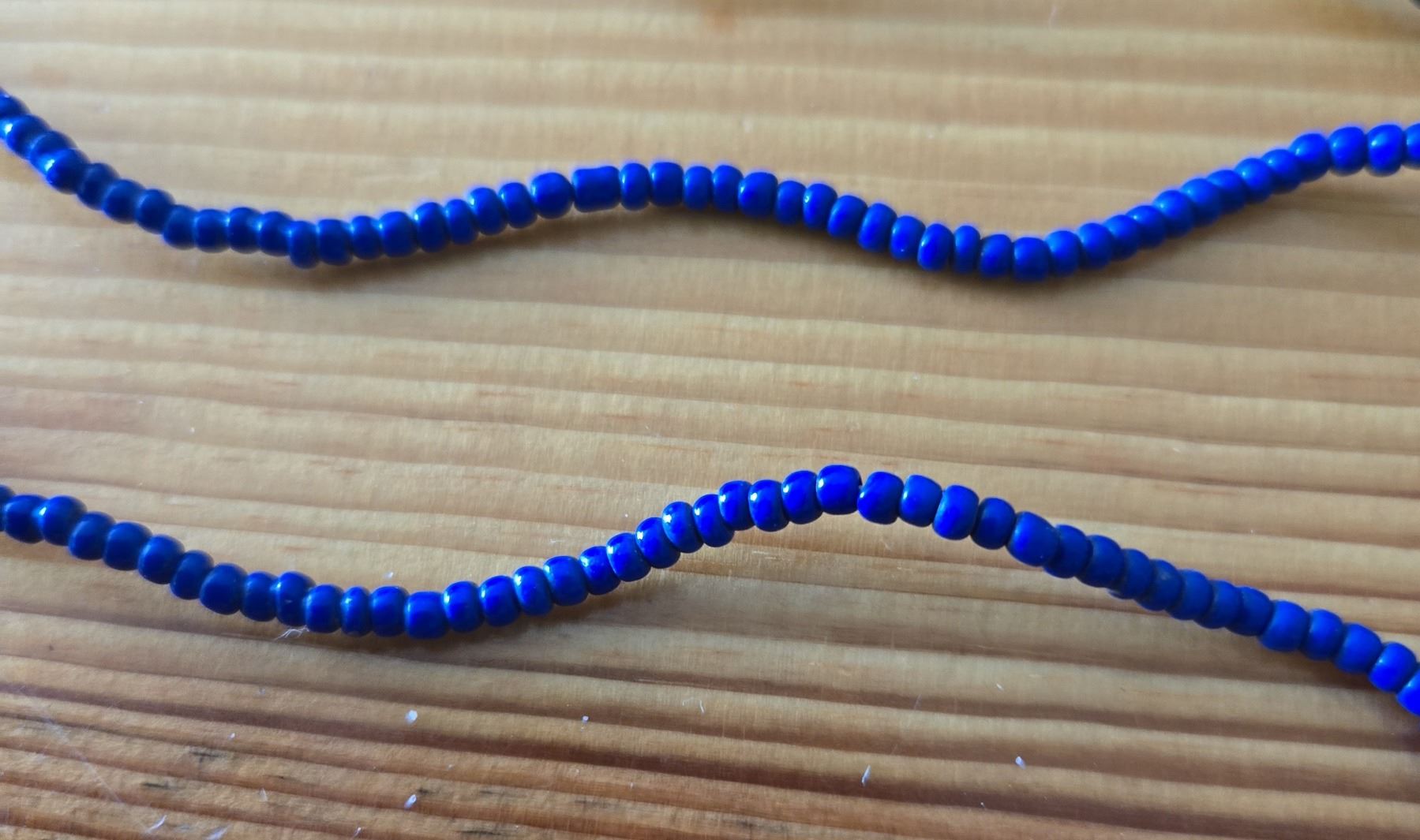 Three Strands & One Bag of Smaller Beads. Lots includes one strand of cobalt blue seed beads measuring 3 mm in diameter, one strand of black tubular beads measuring 3 mm in diameter, one strand of metal beads measuring 3mm in diameter and one bag of clear pony beads measuring 5mm in diameter.