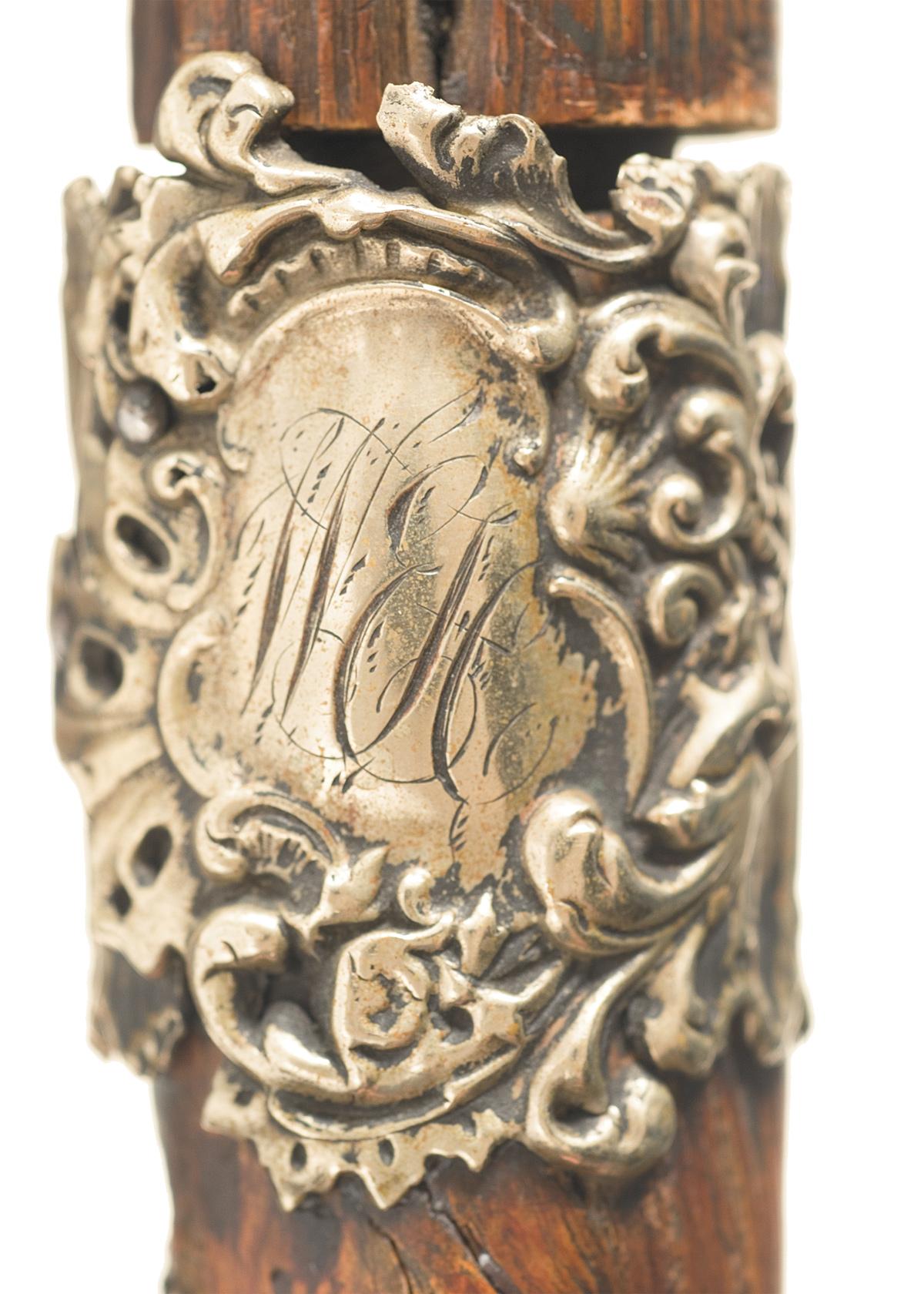 1) Very good with some flaking of the paint, scattered handling marks and a dark patina on the blade. 2) Good, with mild wear a a few areas of fill on the exterior, along with some spotting and areas of patina on the blade. 3) Fair, with a crack near the tip and spotting on the blade.