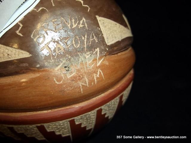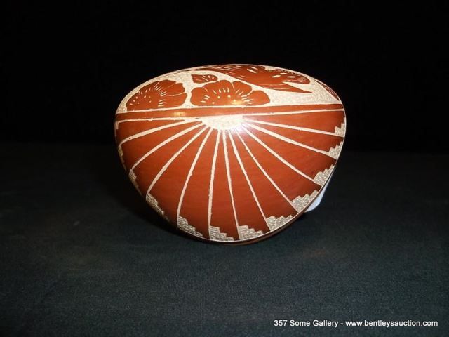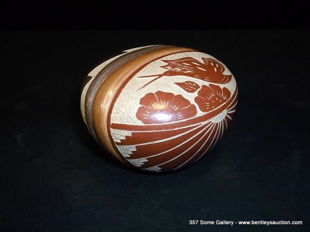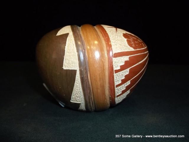 Three-Tone Sgrafitto Clay Pot by Brenda Tafoya, Jemez, New Mexico 2 3/4"x3 3/8" Retail: $124.00