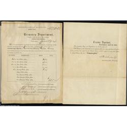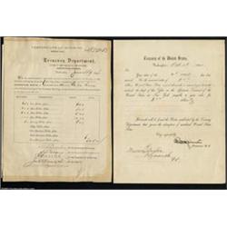 Three Treasury Department Items Relating to the Redemption of Defaced Bills.Three documents, one from 1865 and the others from 1874, from the Treasury Department relating to the redemption of mutilated or counterfeit currency. An interesting group that should be of some historical interest. 3 items Important notice: We expect to be auctioning lots at the rate of 200-250 per hour. Sometimes eBay Premier live bid software cannot keep up with that pace, so we strongly recommend that you place a realistic proxy bid now as insurance to avoid disappointment. Also please note that all Heritage/CAA lots purchased through eBay Premier carry a 20% Buyer's Premium. Please make sure you read the Terms and Conditions.