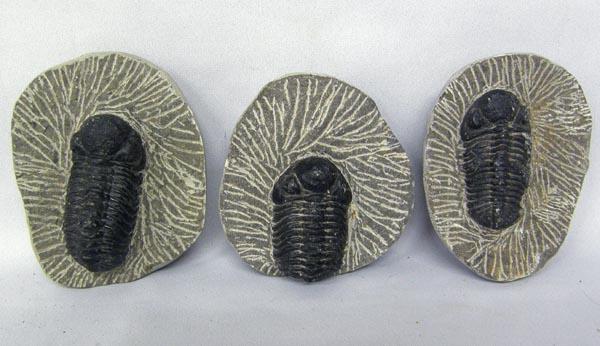 Three Trilobites. Largest measures approx. 3.75''Lx3''W. Buyers Pay Actual Shipping and Handling Charges(see terms and conditions for more information).